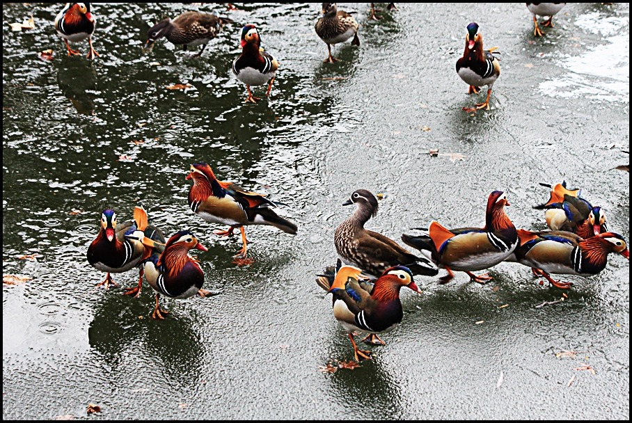 원앙의 무리들과 정겹게 노니는 암 수의 한 쌍 도 예쁘구요