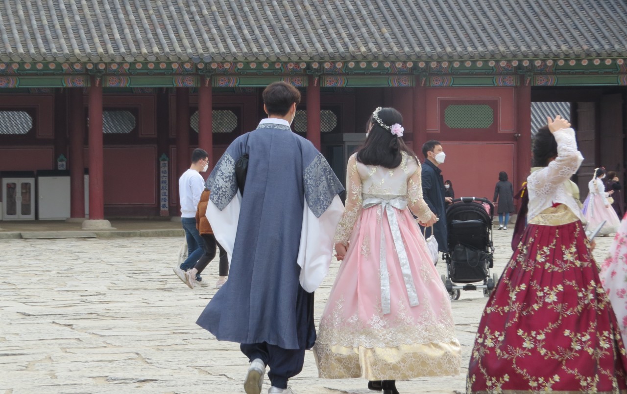 경복궁에 갔더니 젊은이들이 한복입은
