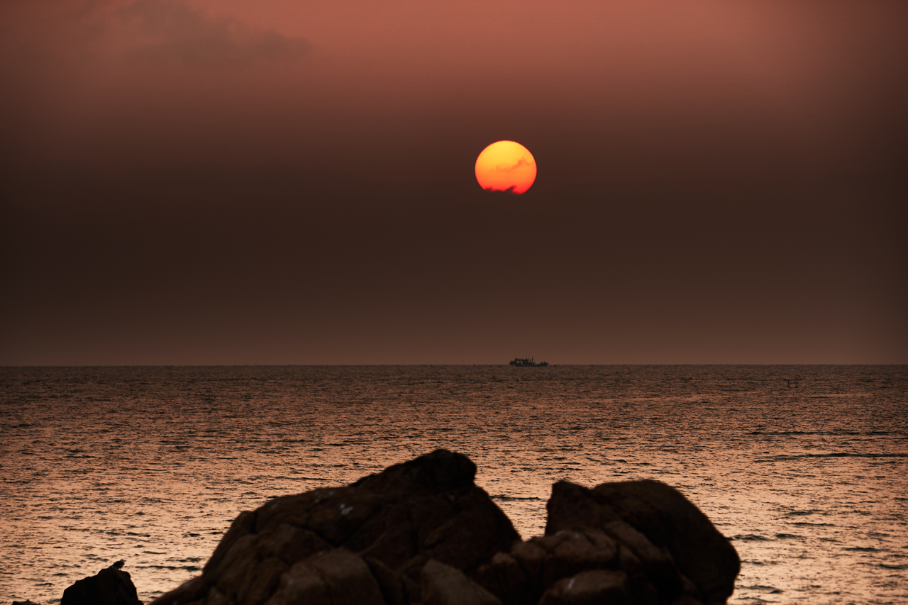 구름한점없는 날 잠진도 선착장에서 일출을 짝었는데,