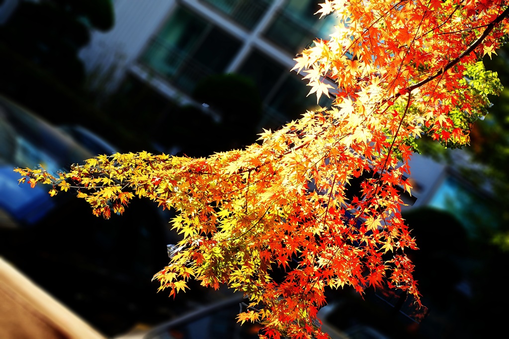 햇빛받으면 아직도 단풍속에서 눈부신가을빛