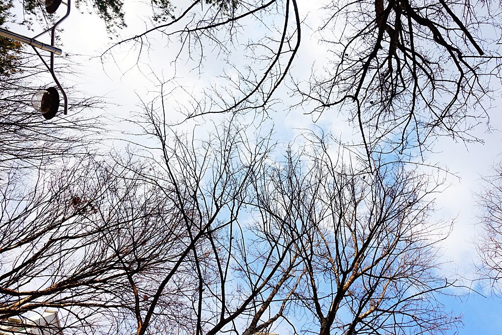지나간 하늘엔 가벼워진 잔가지들이 하늘을향해 곧게 섰다