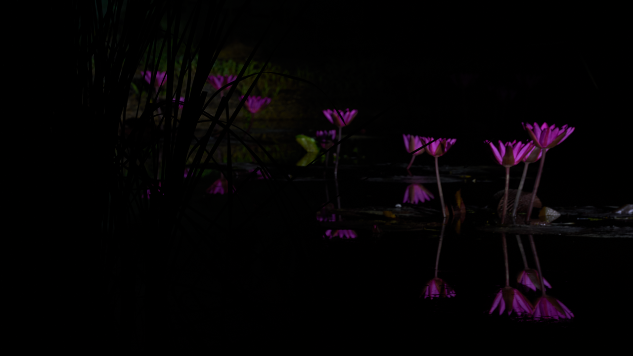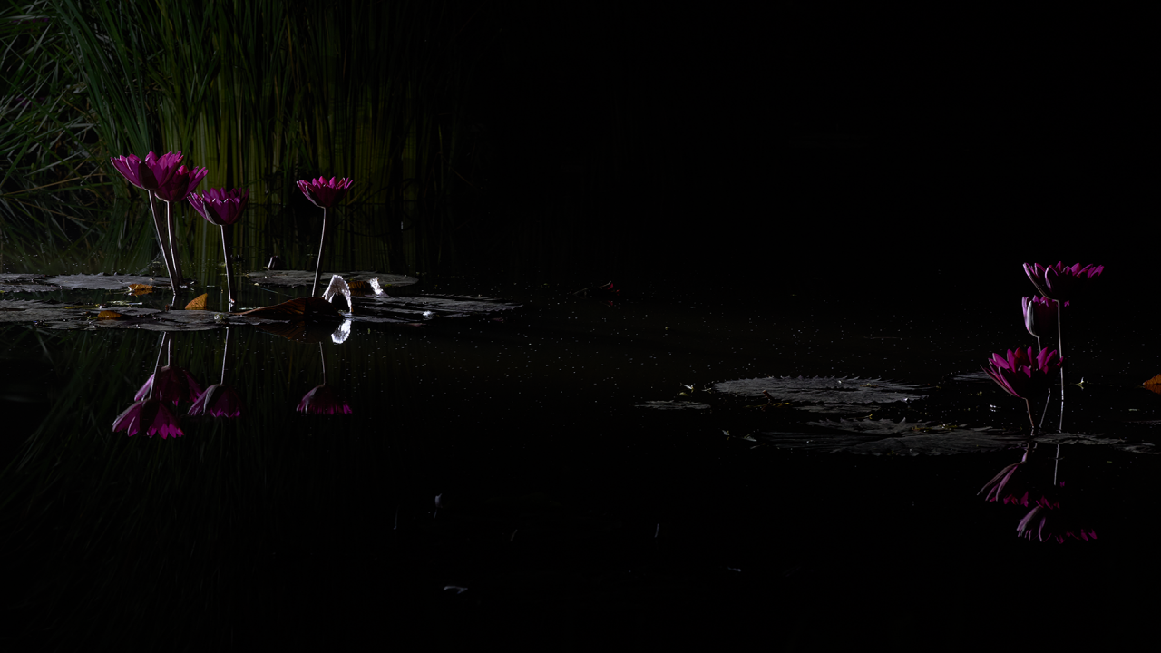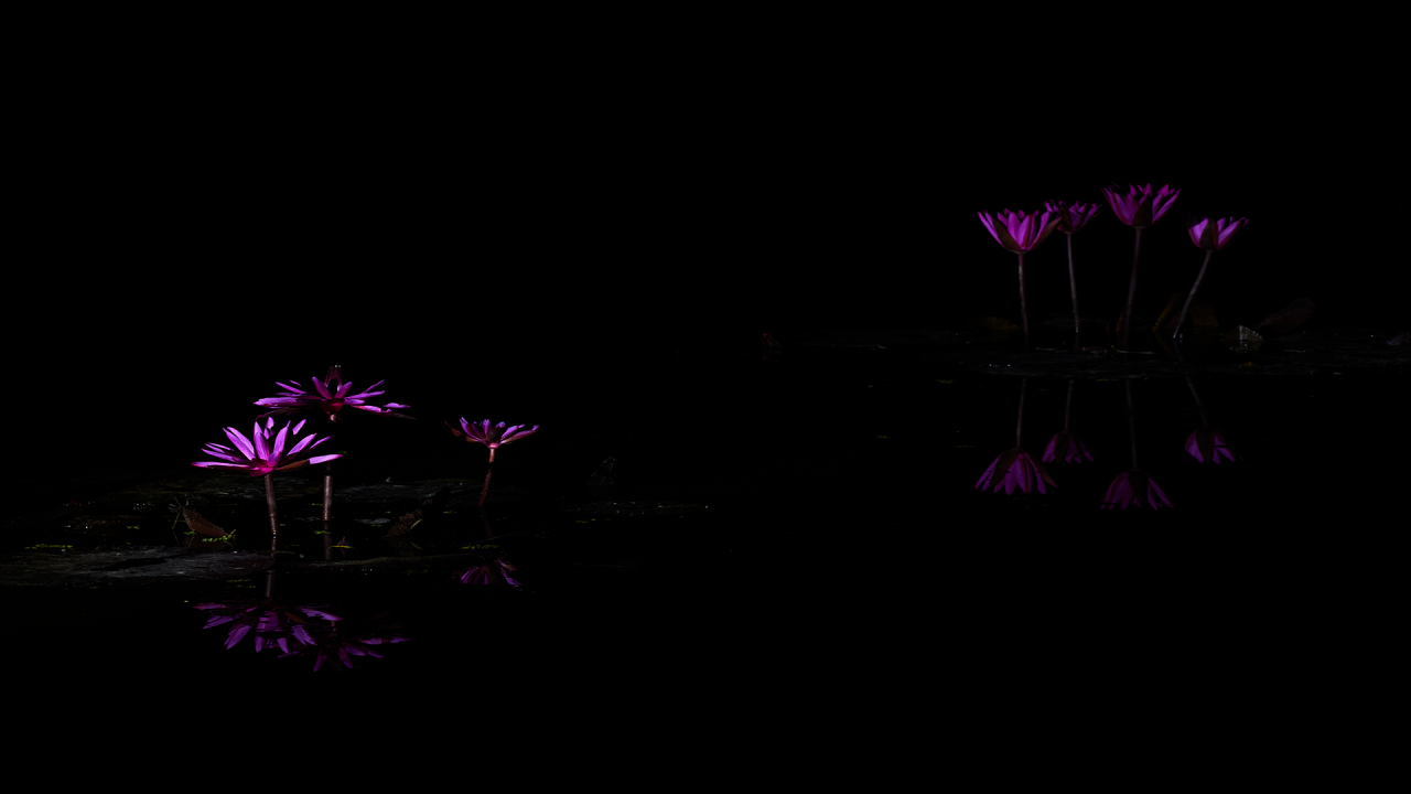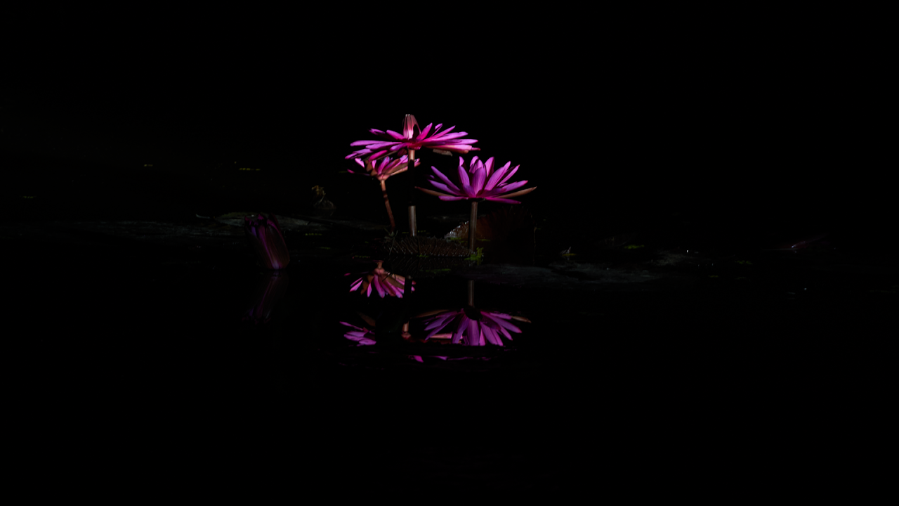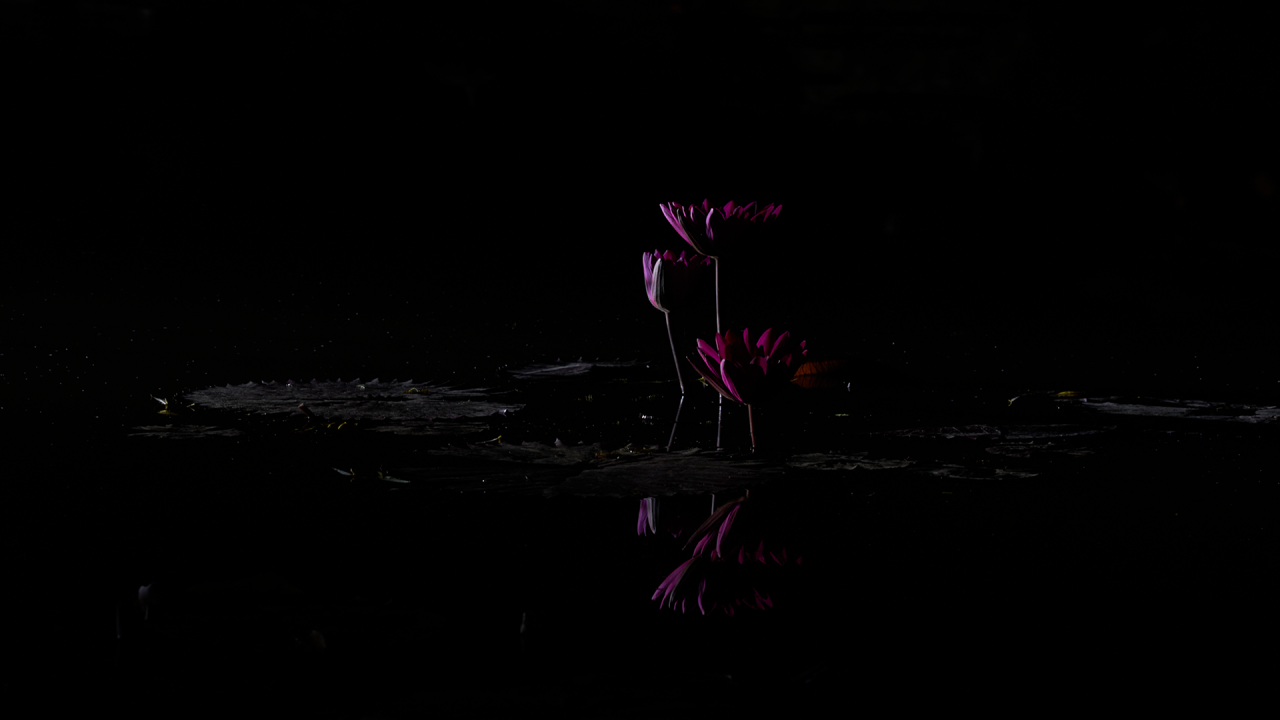 조명시설을 갖추고 수련을 찍는 한 팀이 있어