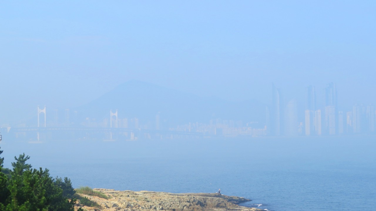 해무가 가려버린 이기대 바다