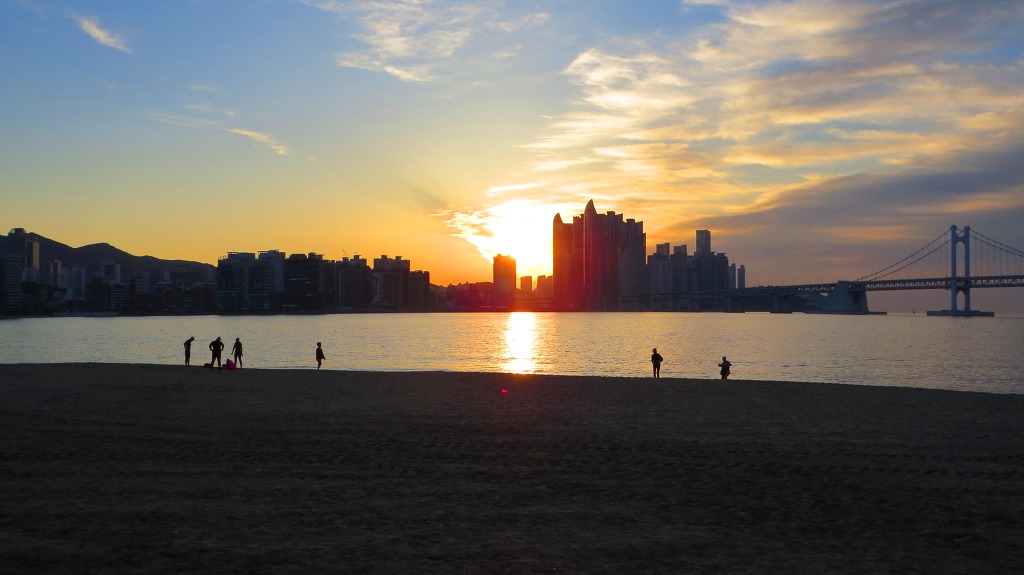 광안대교위의 찬란한 여명과 일출