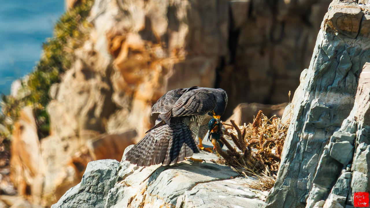 나는 모습이 너무 빠른 물총새가 사냥당한 모습을 보니, 송골매의 빠름을 느껴봅니다.
