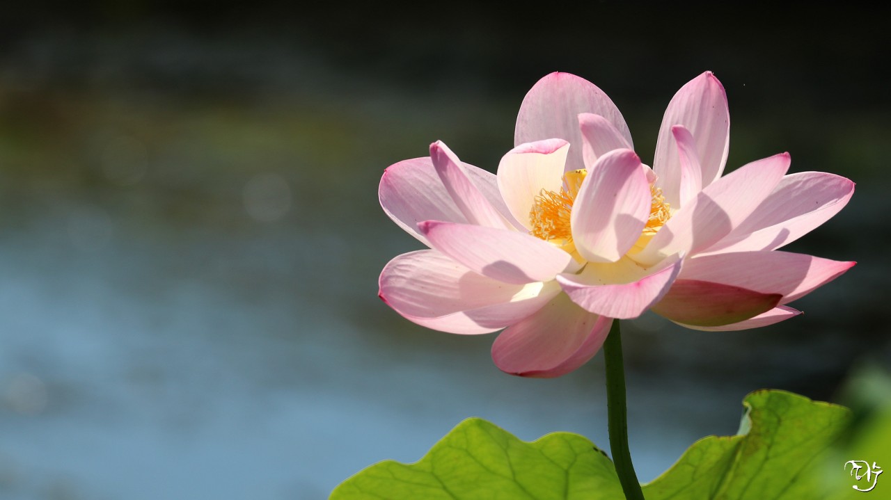 우아한 연꽃은 언제나 경건합니다 청아한 얼굴이 바람에 살랑대는 듯 한낮을 피워 냈습니다