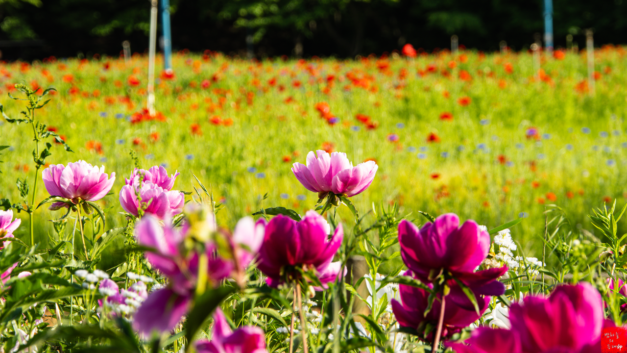환한 양귀비와 작약의 화사한 모습이 즐거움을 주는 것 같습니다. ^^.