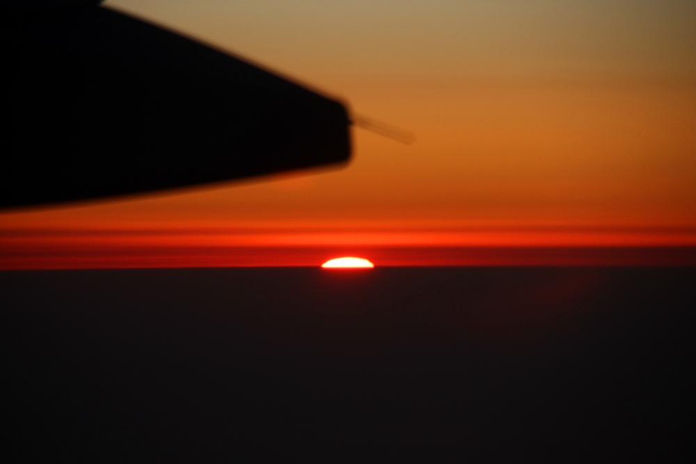 비행기 안에서 지는 해를 보다