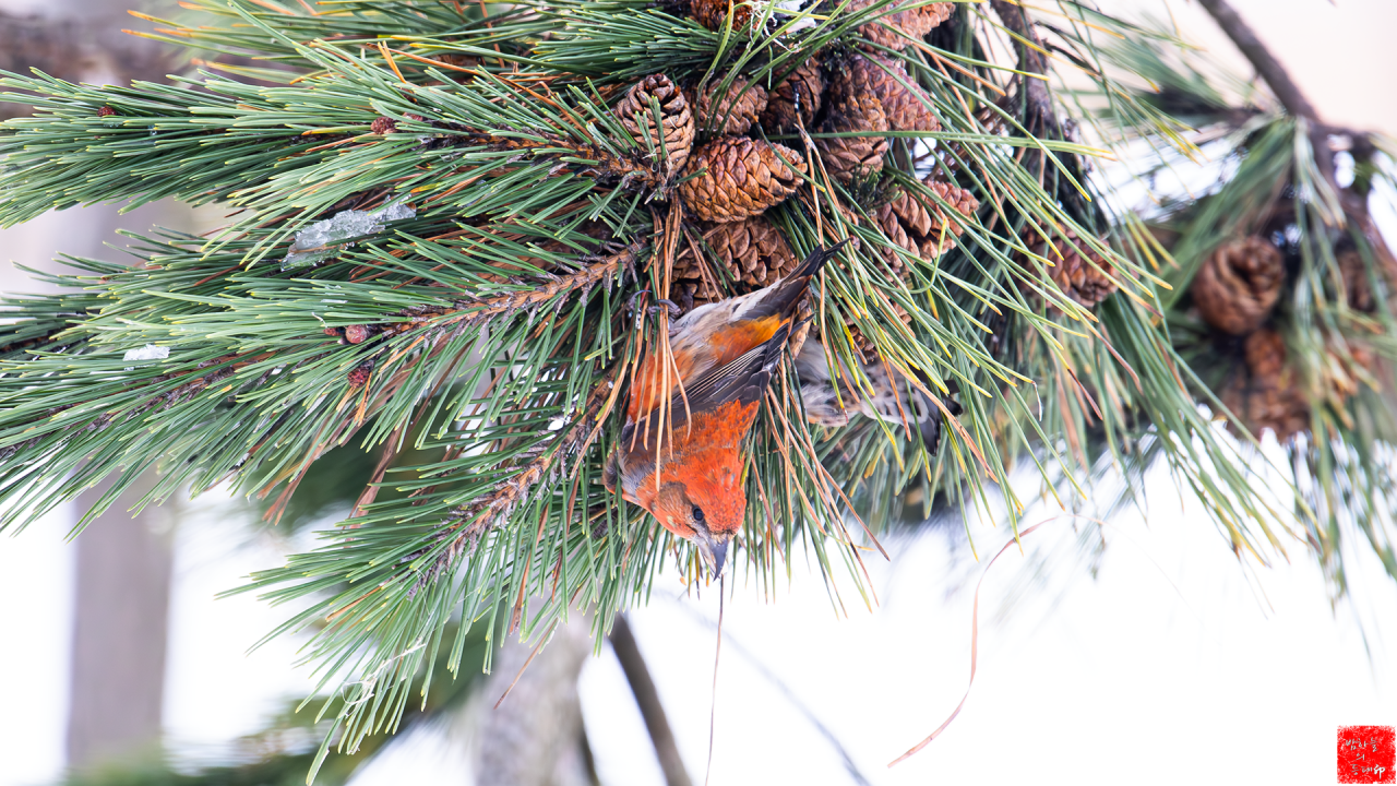 이름에 나타나듯이 솔방울의 씨앗을 먹으러 떼를 지어 다니는