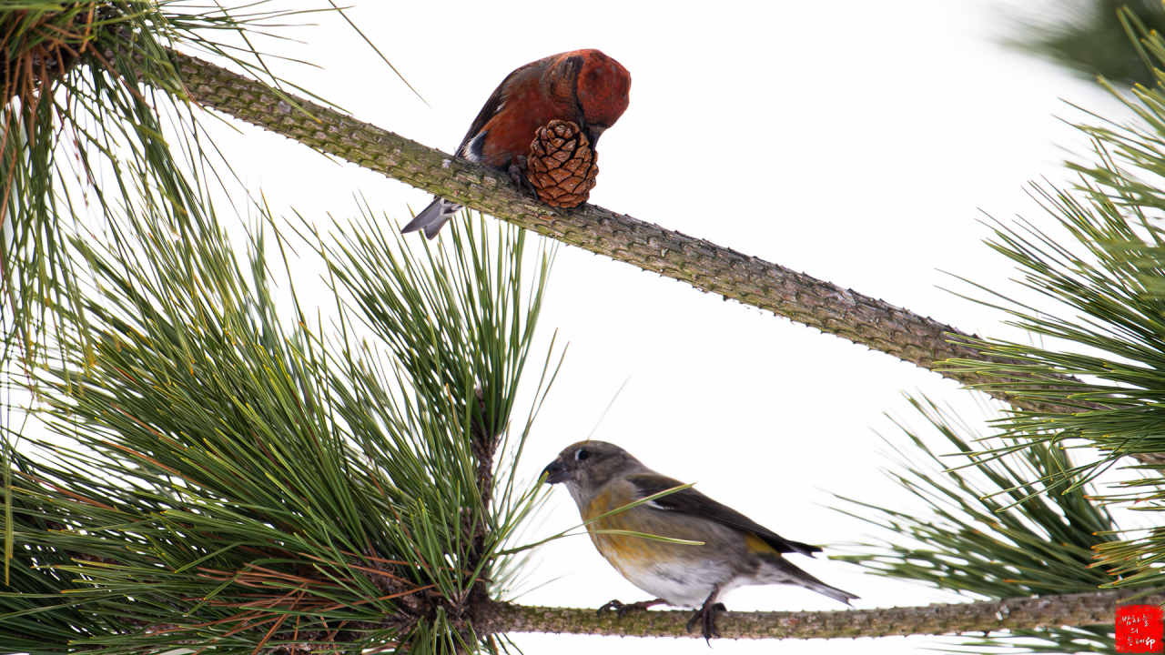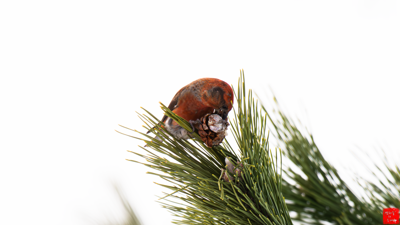 솔방울의 씨앗을 캐기 위해 부리도 가위처럼 비틀어져 진화된 모습입니다...^^...