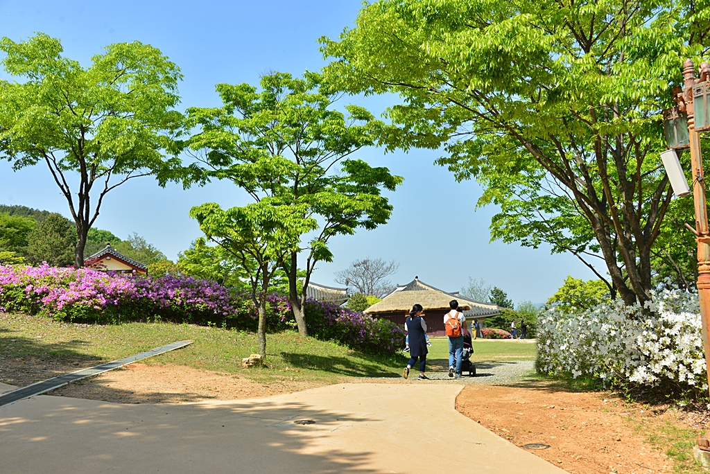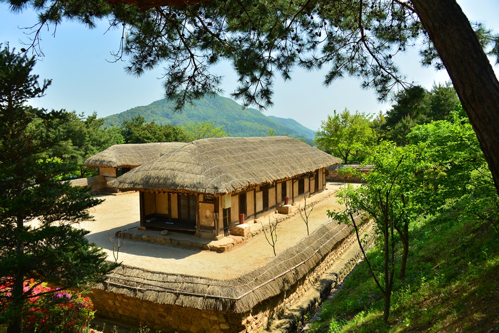 어릴 적 추억이 떠오르는 초가집들이 옹기종기 모여 있고