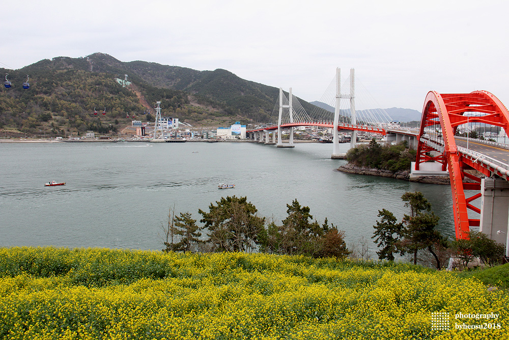삼천포 대교 화사한 유채꽃과 아름다운 풍경