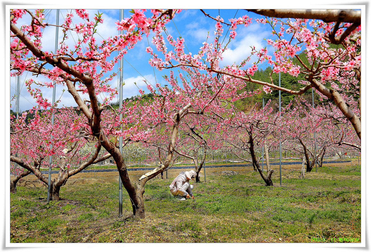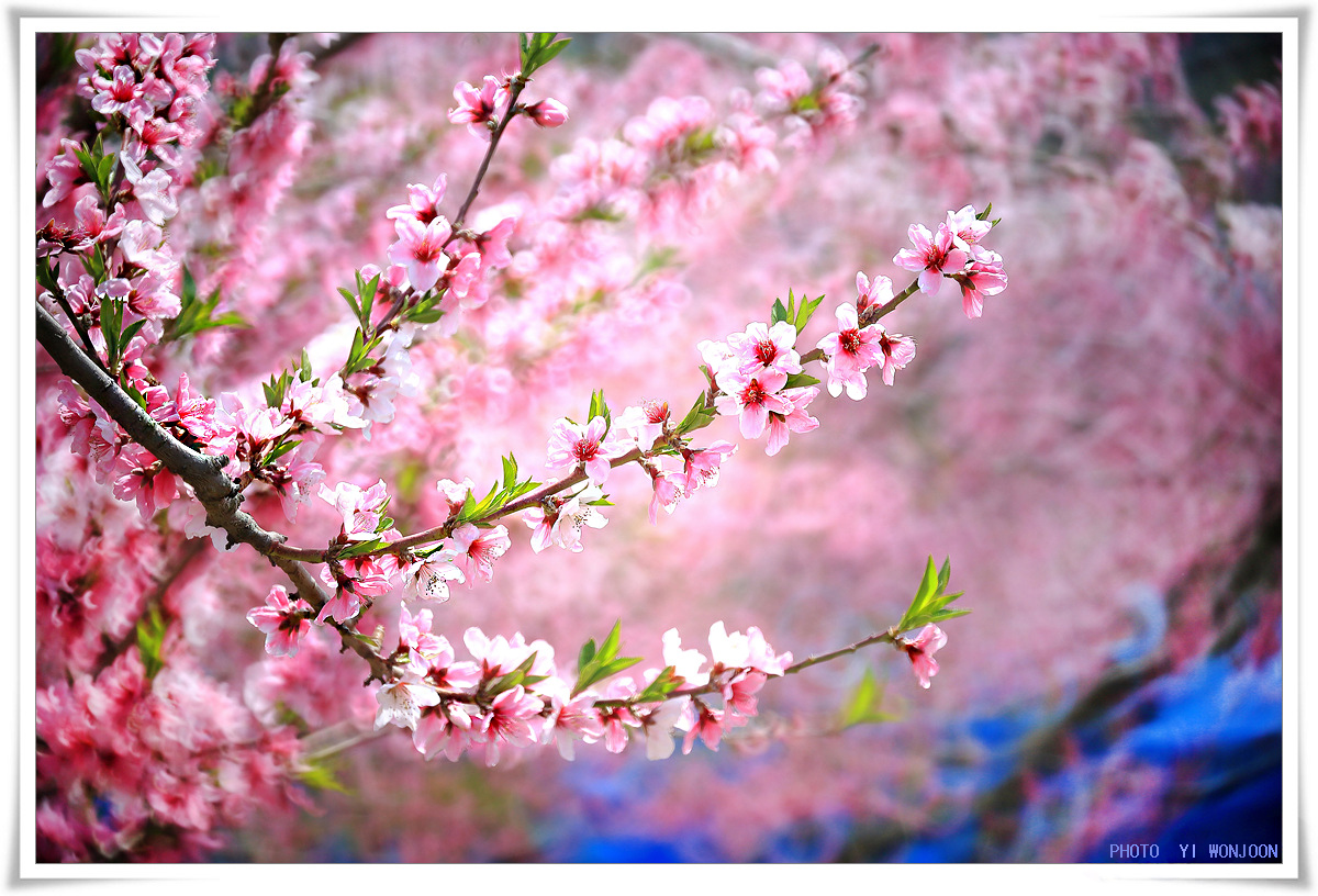 상큼한 복사꽃 밭이 참으로 평화롭고 아름답습니다