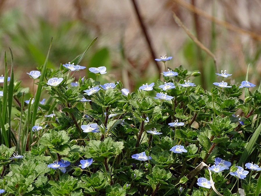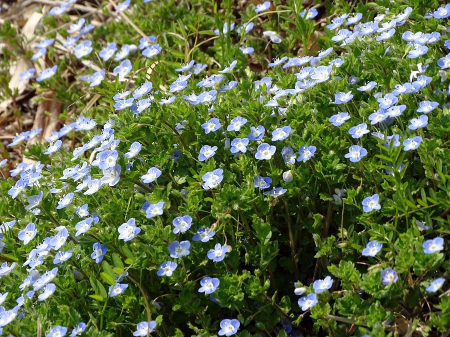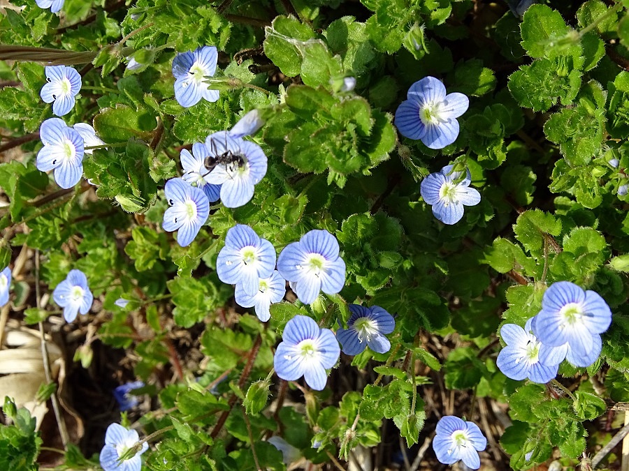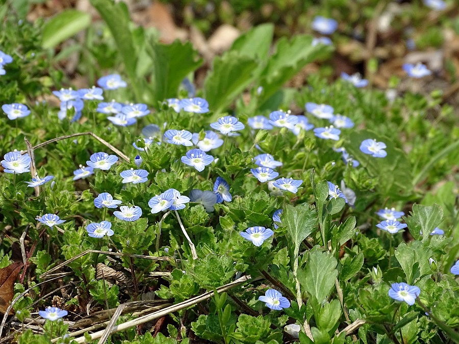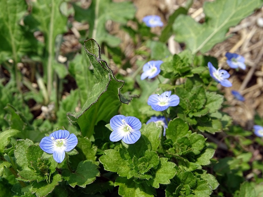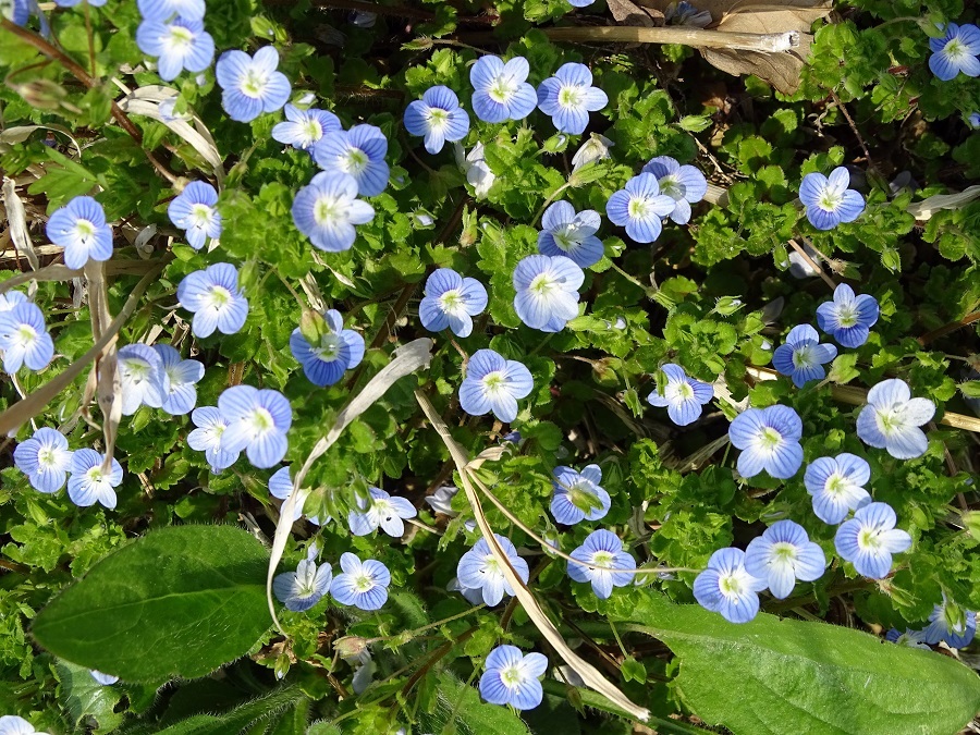 큰개불알풀 사이로 망초, 개망초, 서양민들레, 꽃마리와 털질경이가 보이네요