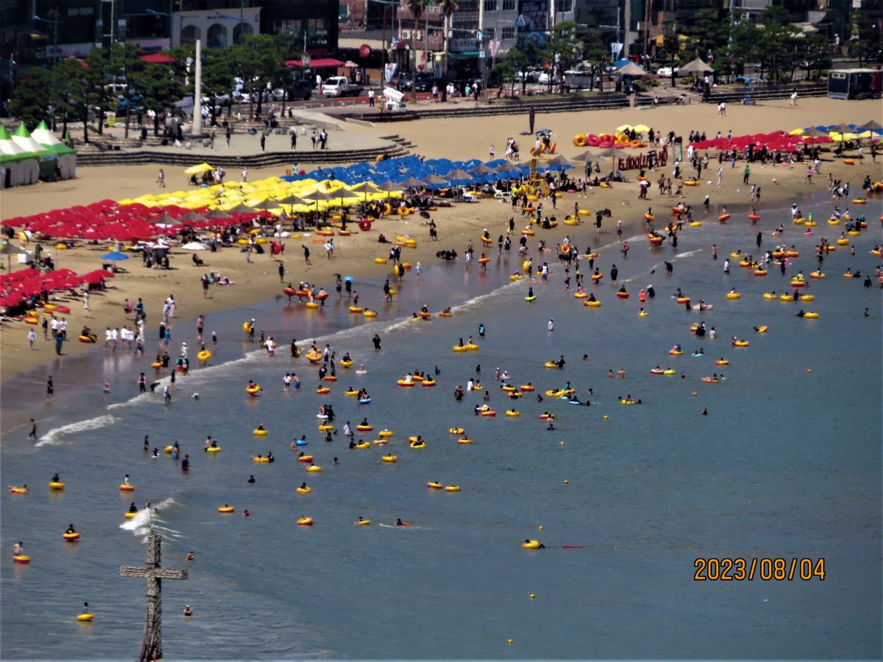 여름은 여름이구나 싶습니다...튜브를 타는 사람들과 백사장을 메운