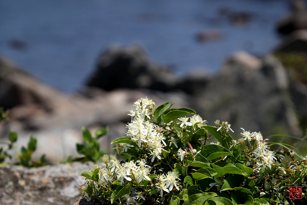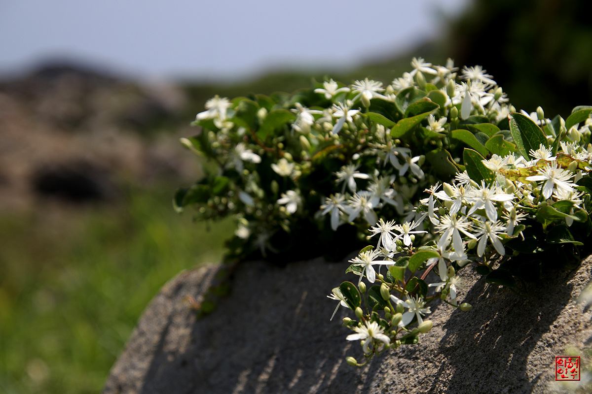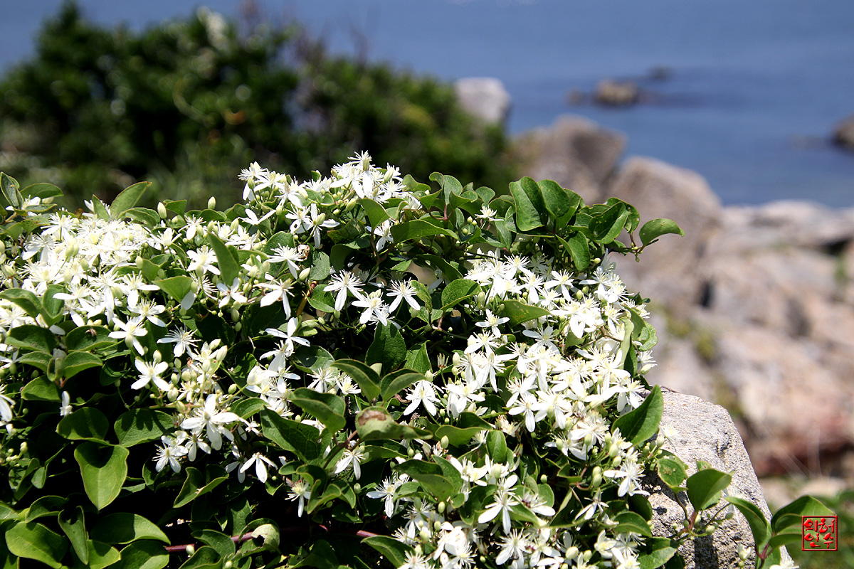 바닷가에 곱게 핀 하얀 으아리 꽇이