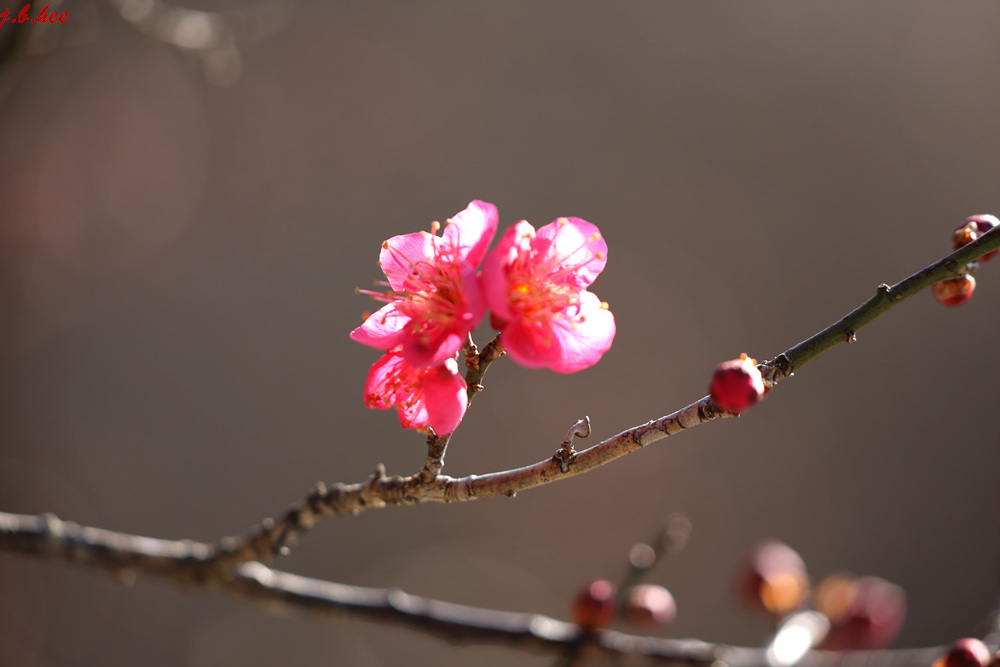 순천 금둔사에 홍매화가 1월초부터 피어나기
