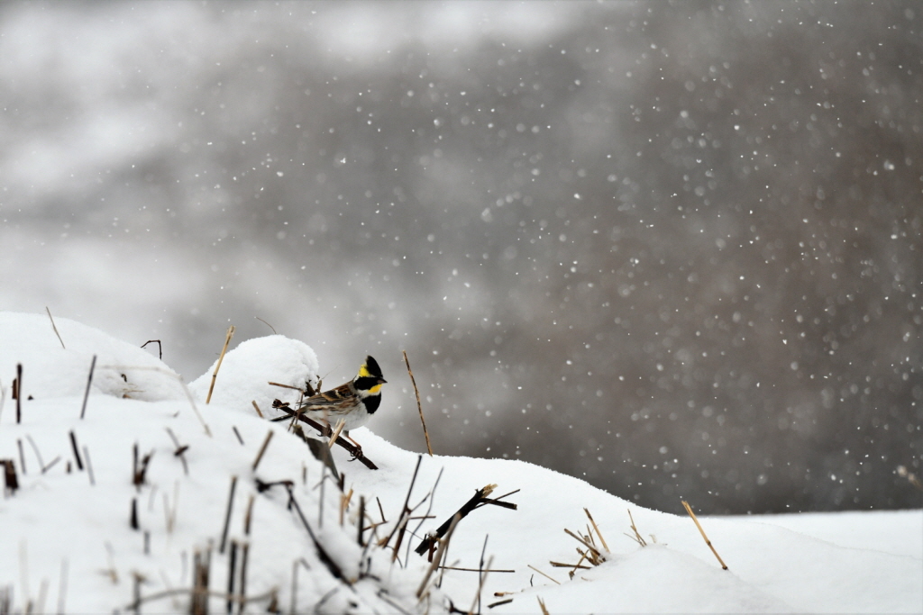 노랑턱머리새 라던가 저도 눈오는날 길에서 만난