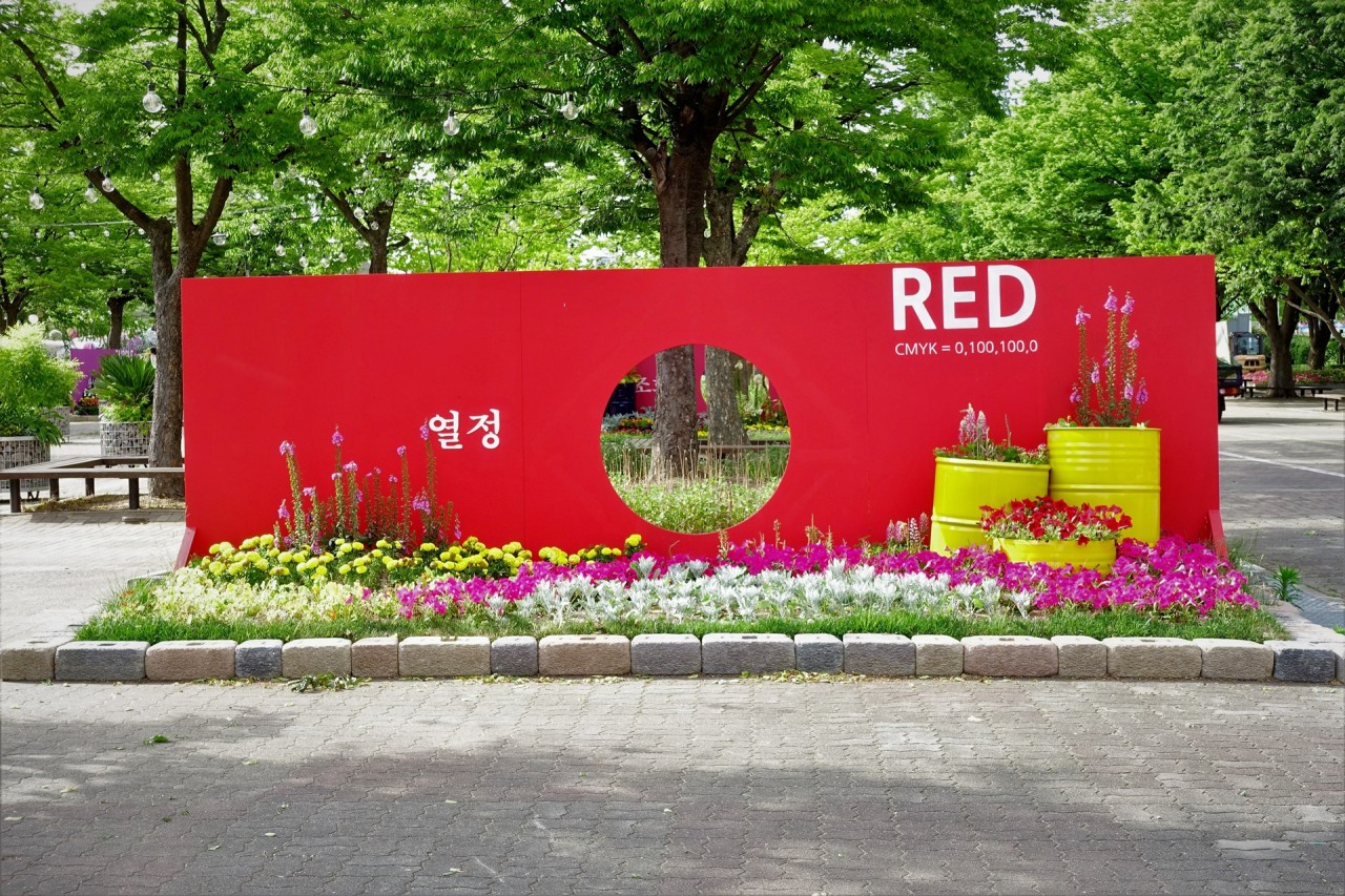 호수공원에 꽃을 띄워 놓은 건가요.?