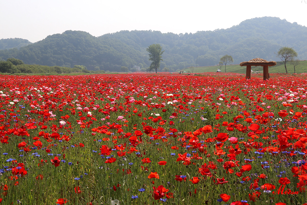 넓은 들판에 화사한 양귀비꽃!