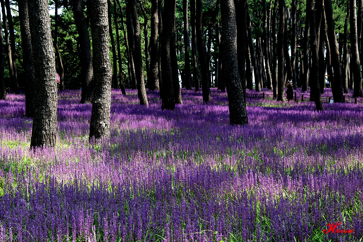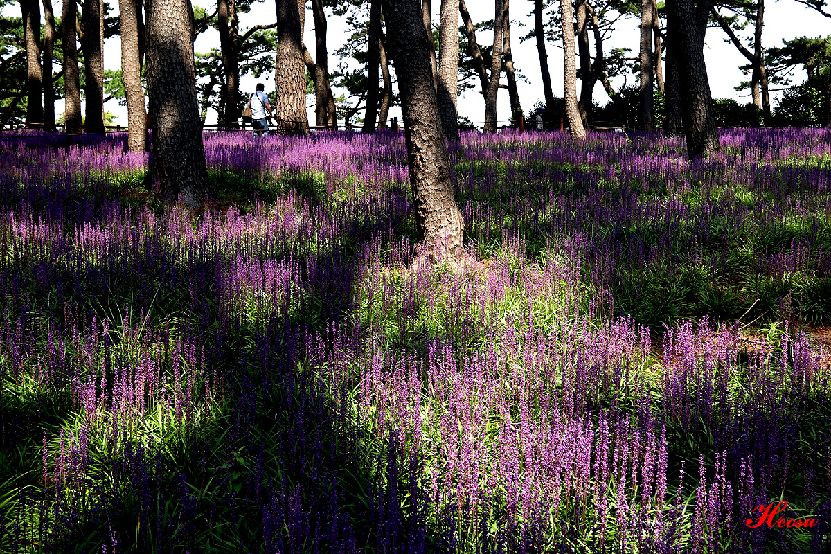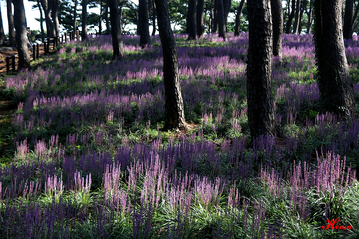 松林과 어울려 피어있는,보라色의 "맥문동"이 아름답습니다..