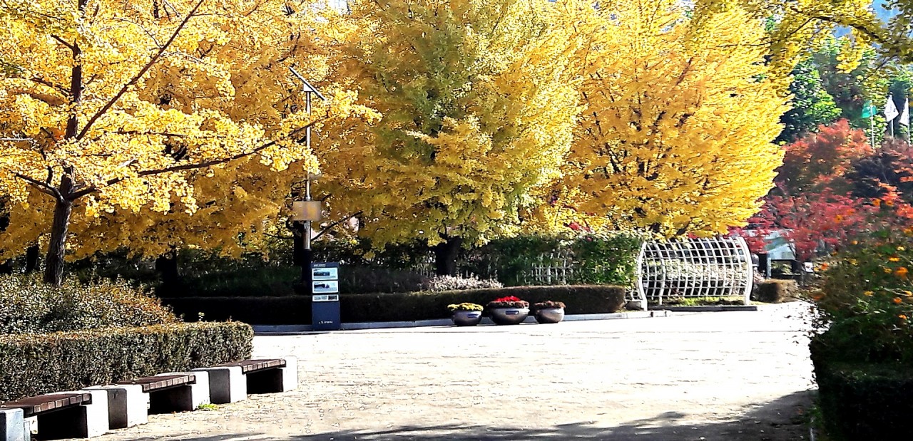 은행나무들이 노랗게 물든 모습도 햇빛에 반짝일 때