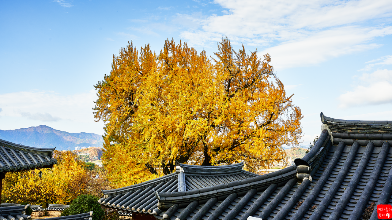 기와집의 고즈넉한 분위기와 천년 고목 은행나무의 모습이