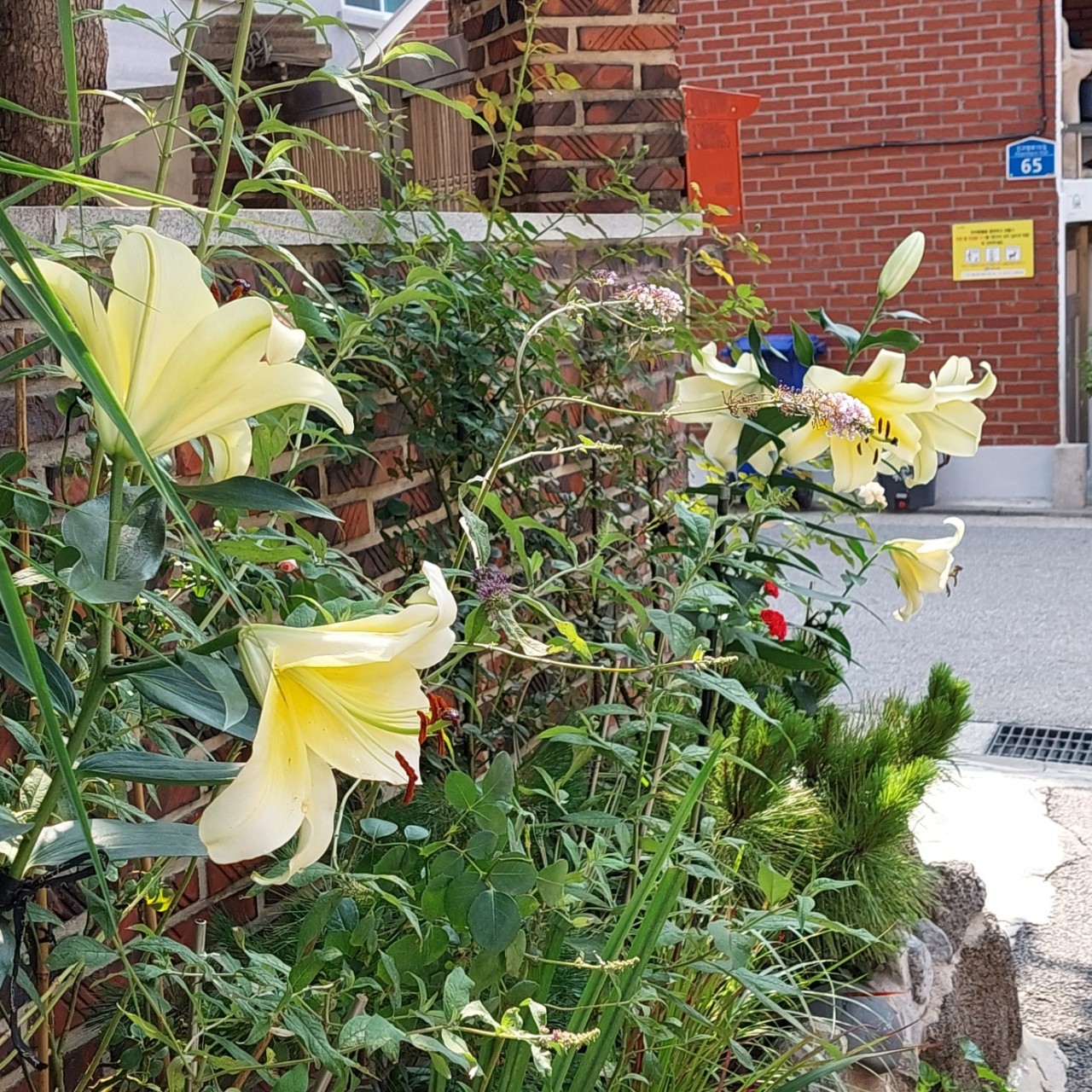 담장 밑의 백합 꽃에 완전 홀려 버렸읍니다.