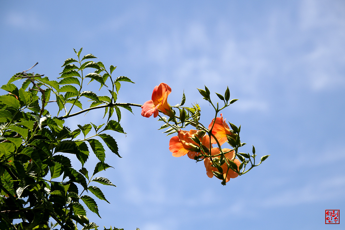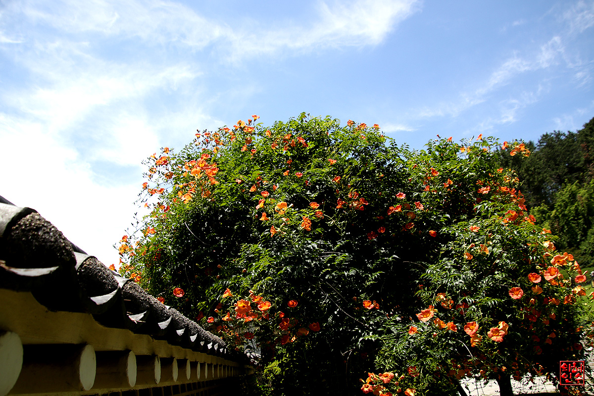 기와 위에 피어있는 능소화는 더욱 그림이 되고, 정취가 있습니다.