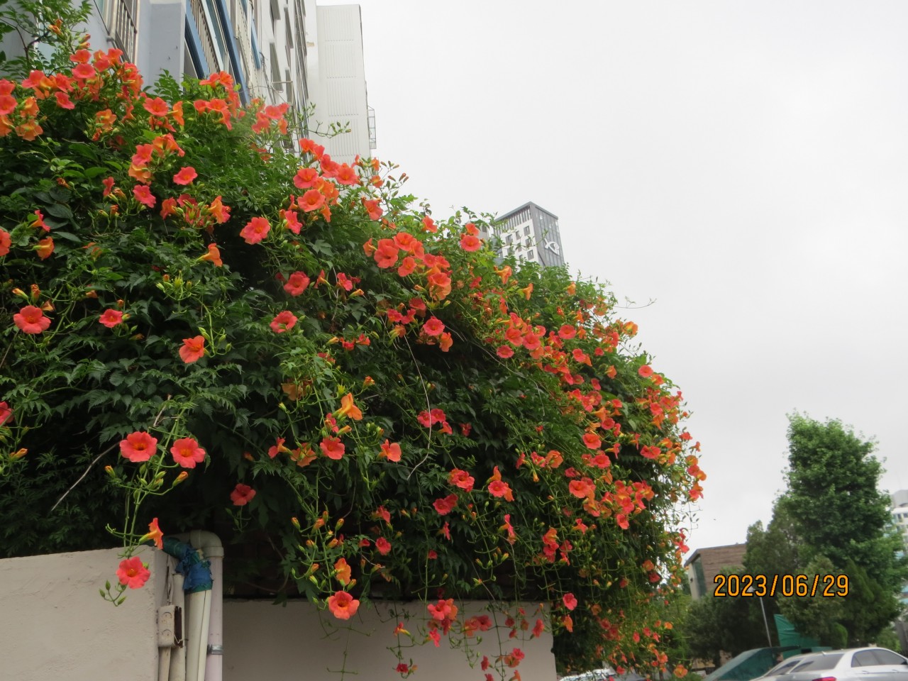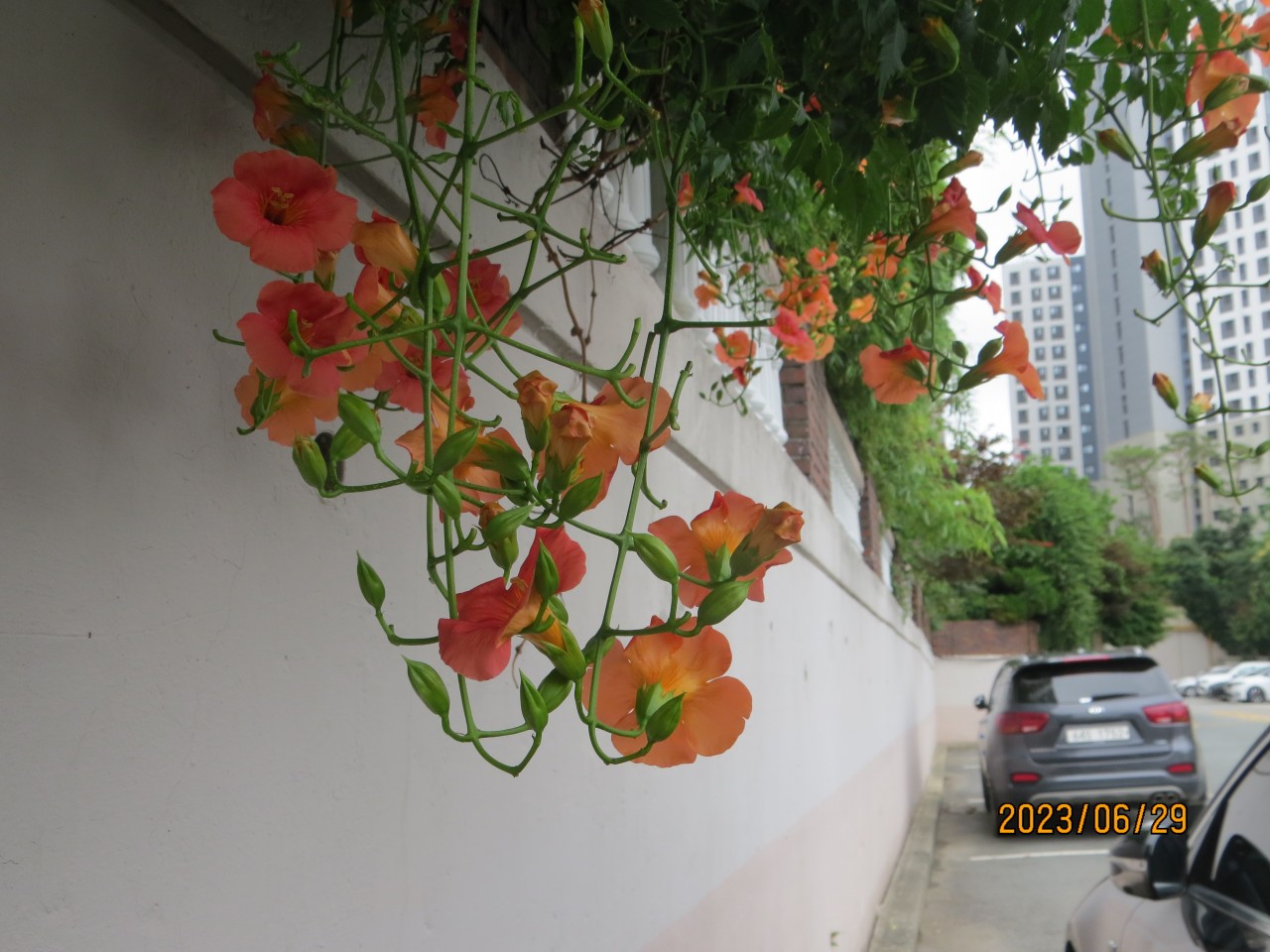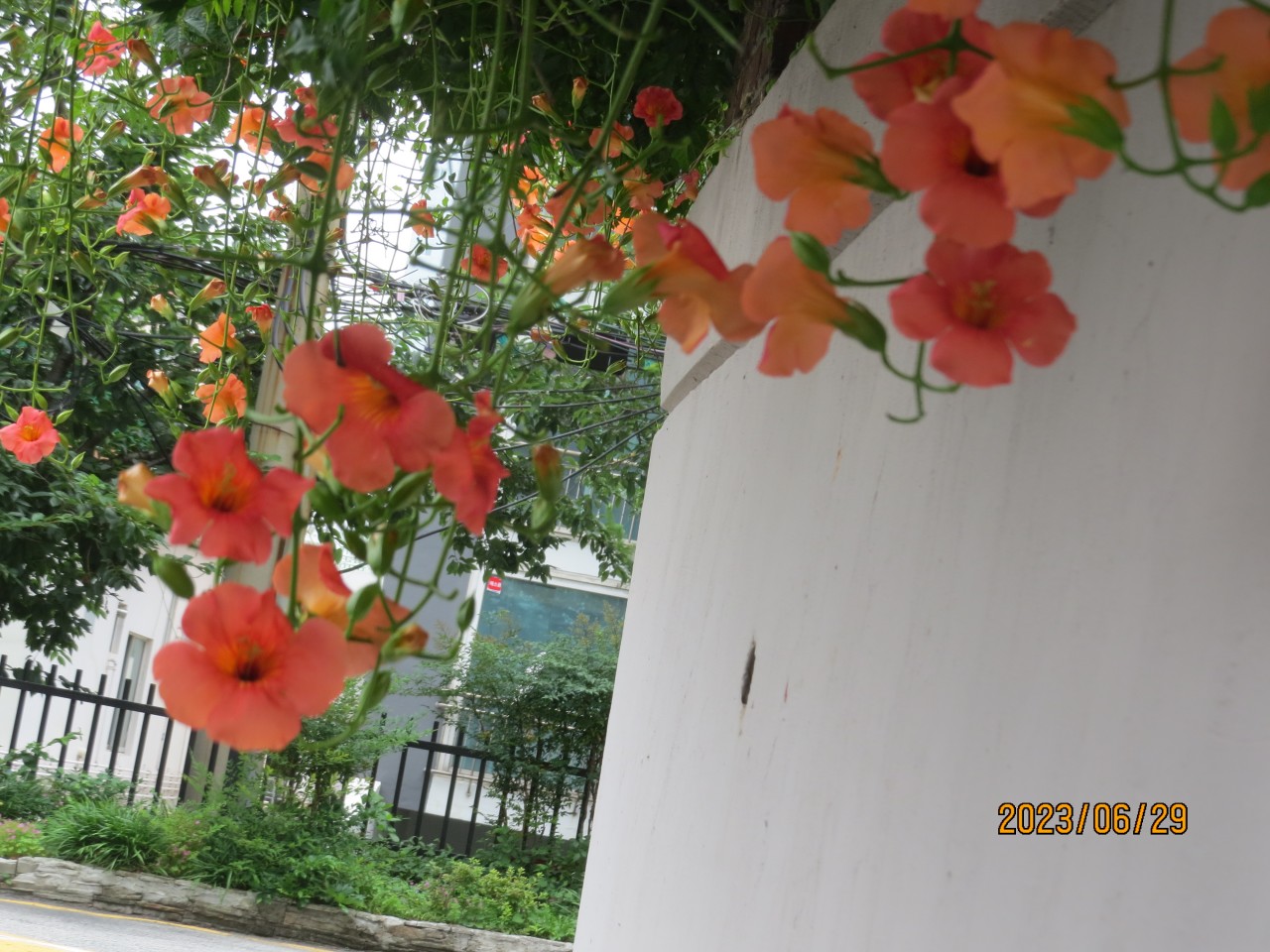 우아파트 담장의 능소화