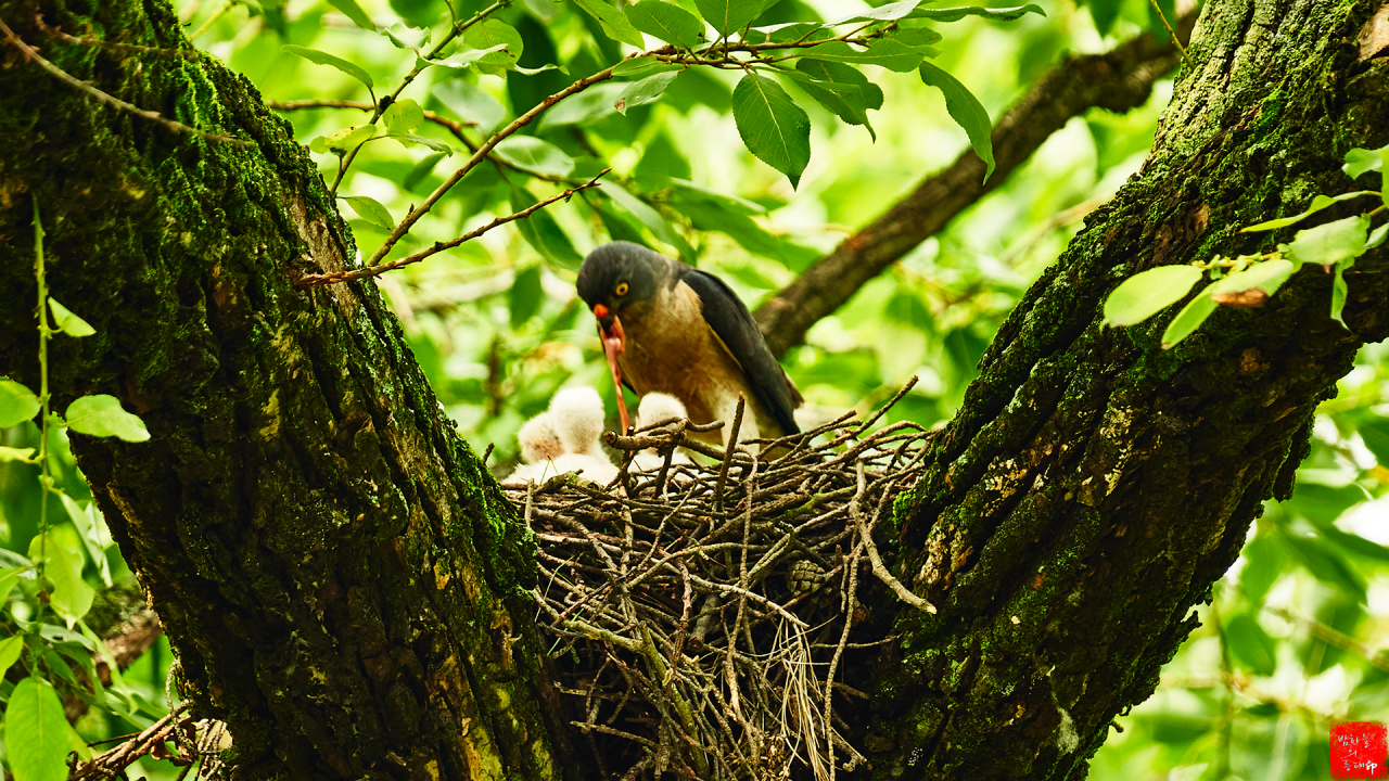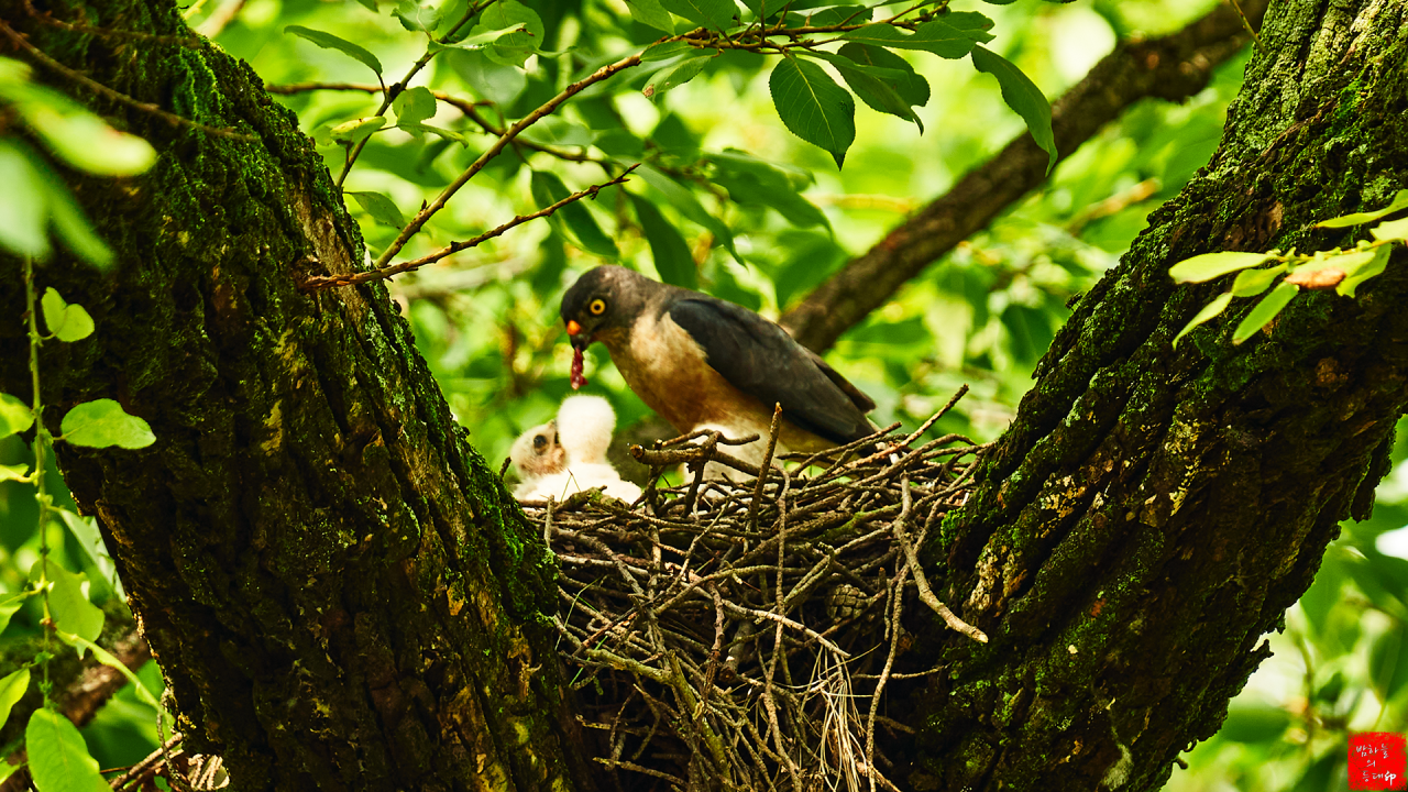 날카로운 부리로 小鳥를 攻擊하는,"붉은배`새매"의 育雛와 "솔부엉이"等..