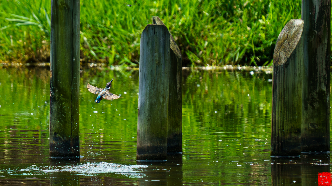 "瞬間捕捉`映像"으로 擔아주신,푸른色의 "물銃새"를 즐`感해요..