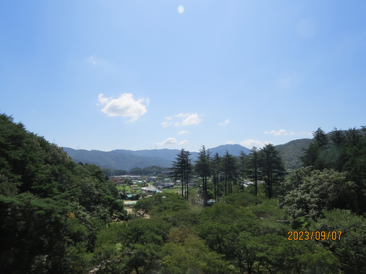 "황산公園"의,"법기`반송"이 優雅합니까? "붉은꽃"은,"百日紅"?