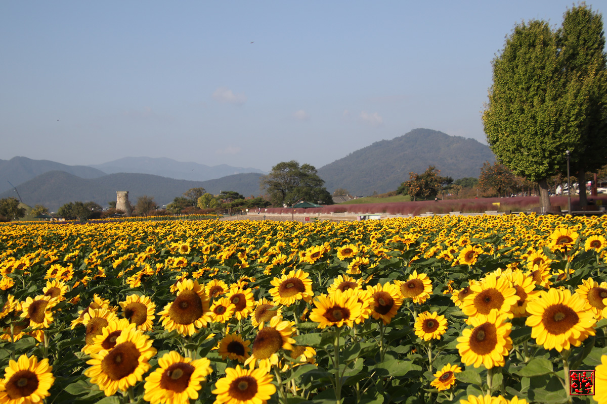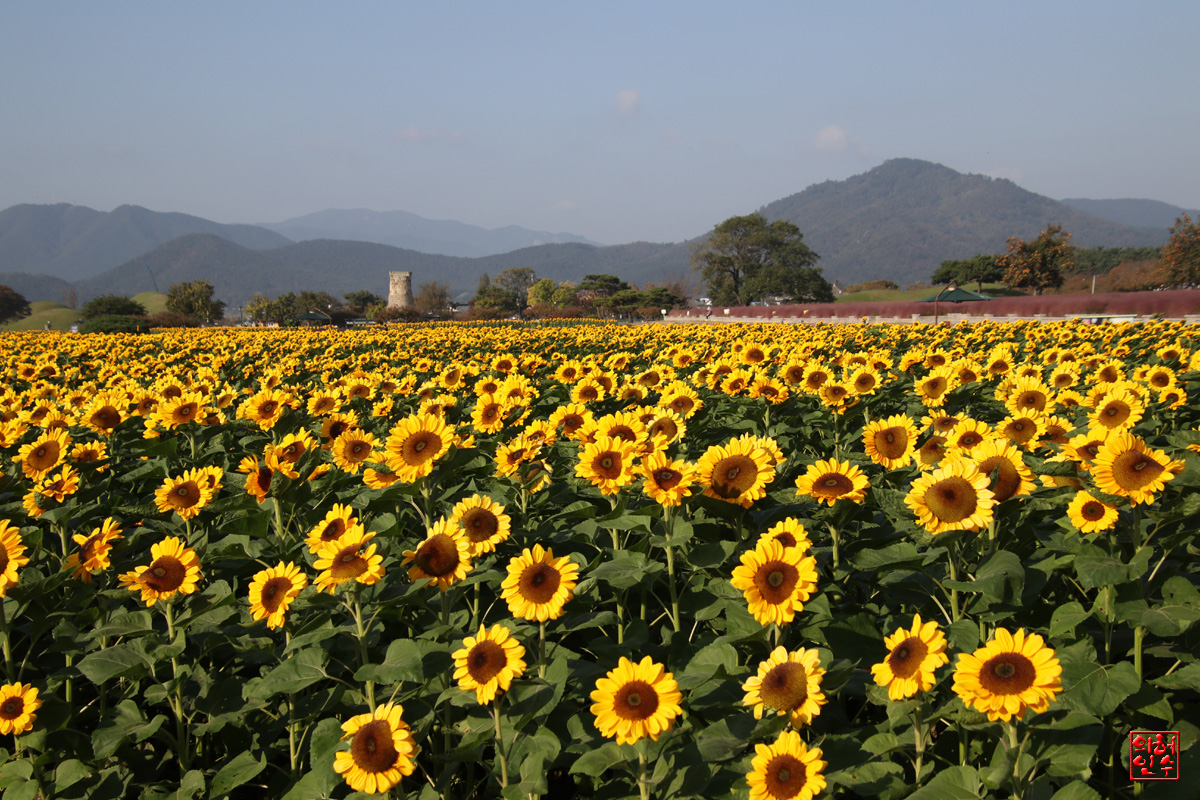 "瞻星臺"를 稟고있는,"해바라기"의 群絡地가 아름답습니다`요..