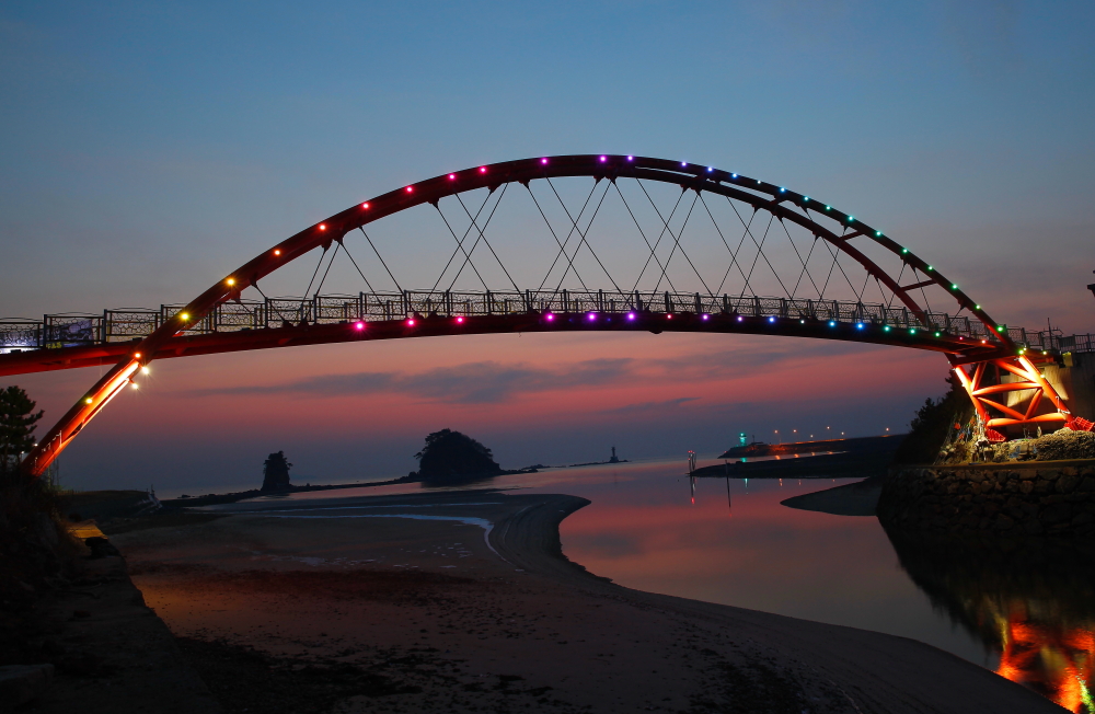 다리 위로 떨어지는 해와 함께 많이 담기도 하죠!