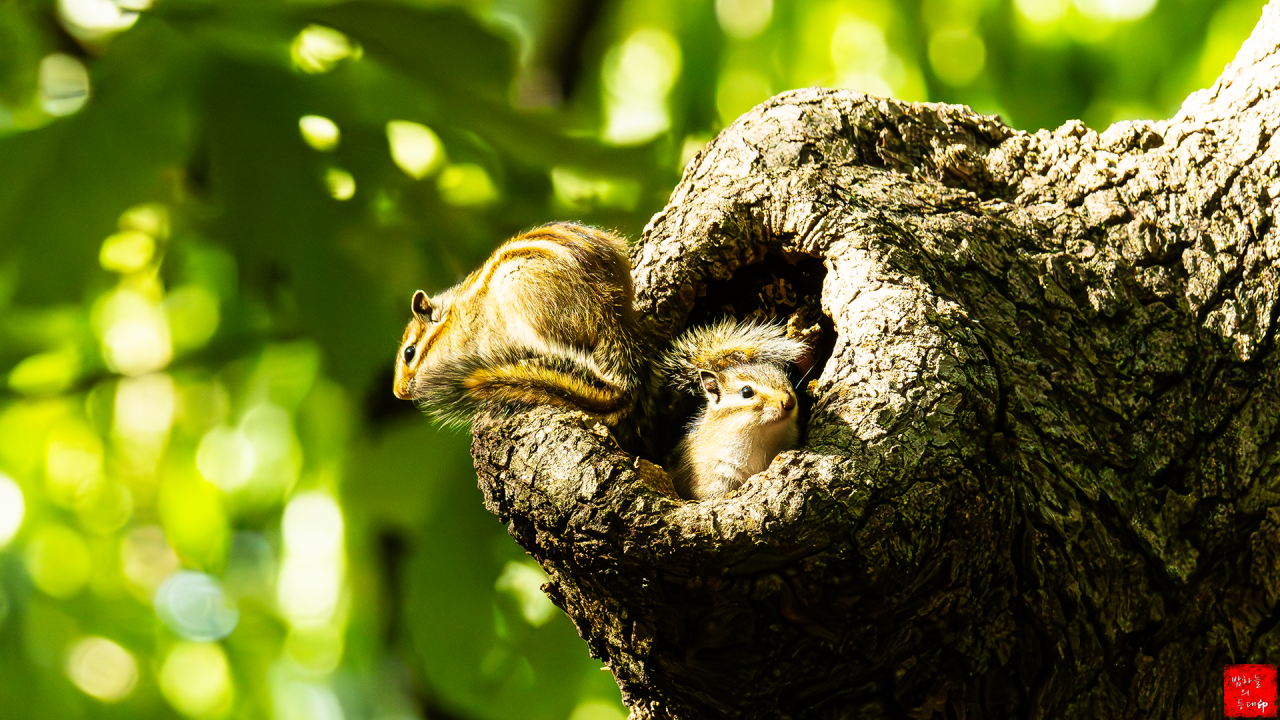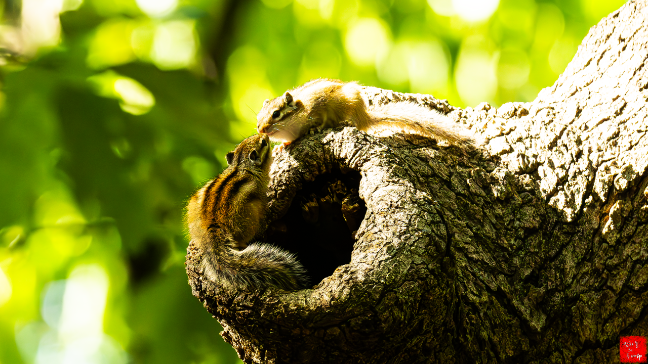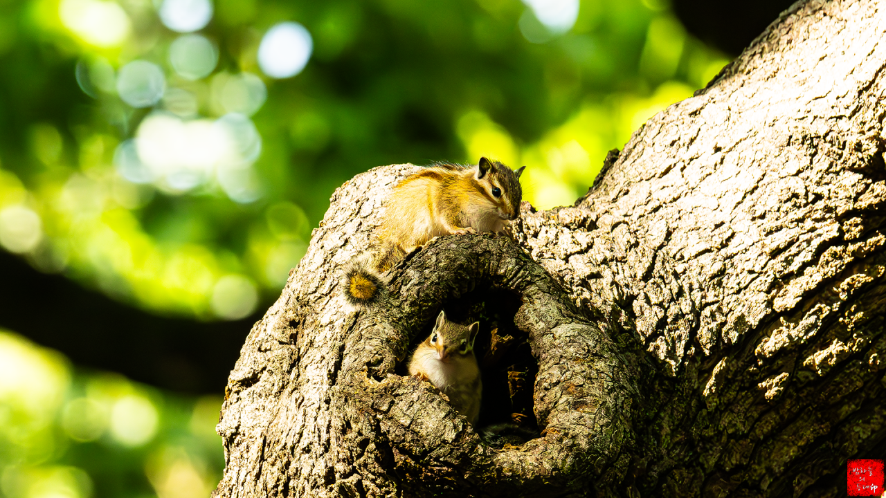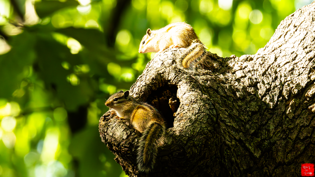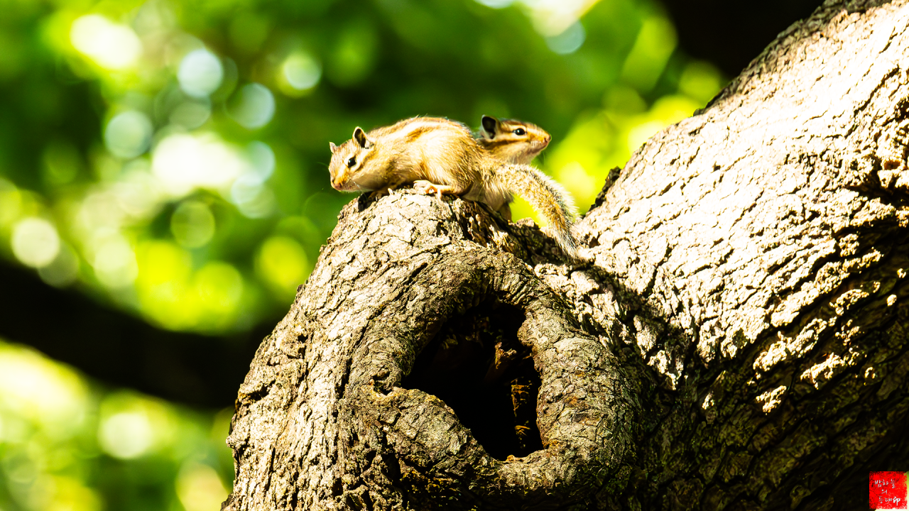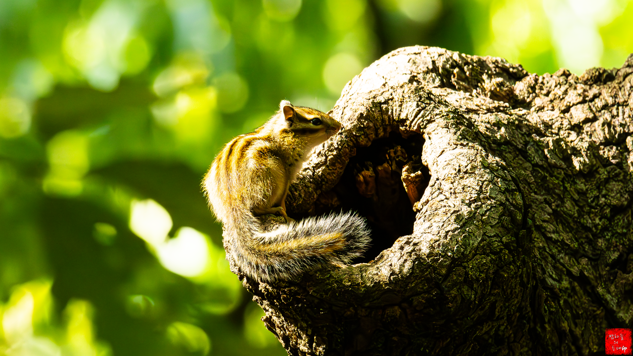 옹이구멍이에 초점을 맞추어놓고 들락거리는 다람쥐를 담아 보았습니다.