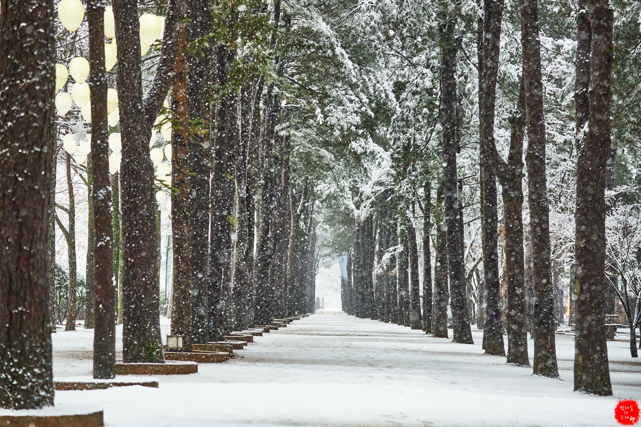소나무와 전나무, 은행나무 등이 백설로 뒤덮이고,