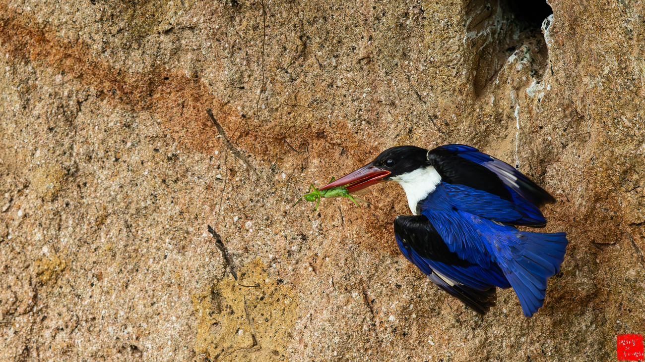 둥지 앞에 턴을 하던 청호반새가 그때부터 새끼들에게 먹이를 주고 간다.
