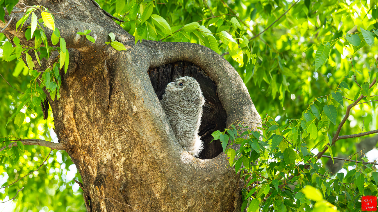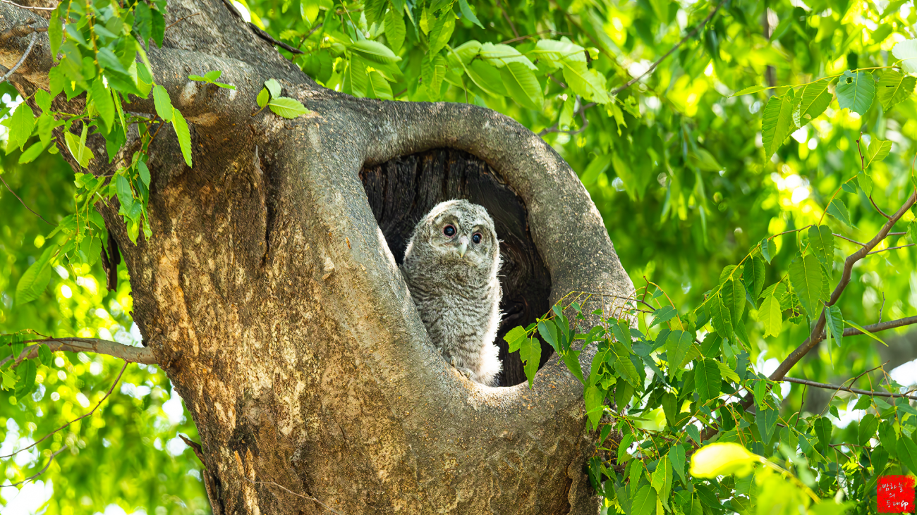 "옹이`구멍"의 "새끼`올빼미"貌襲이,神泌하고 限없이貴엽습니다如..