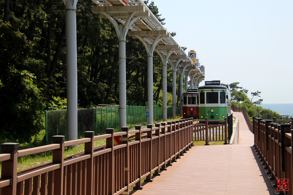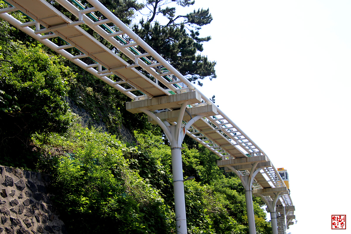 3,4,해변열차와 캡슐열차가 하늘철길과 땅철길 위로 나무늘보 걸음으로 스쳐간다.