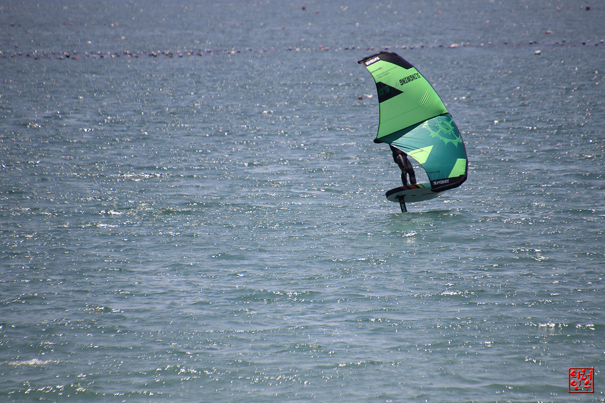 9,10. 송정해수욕장은 윈드스핑을 즐기는 사람들과 강습생들이 바다위에서 파도를 타고 있고,