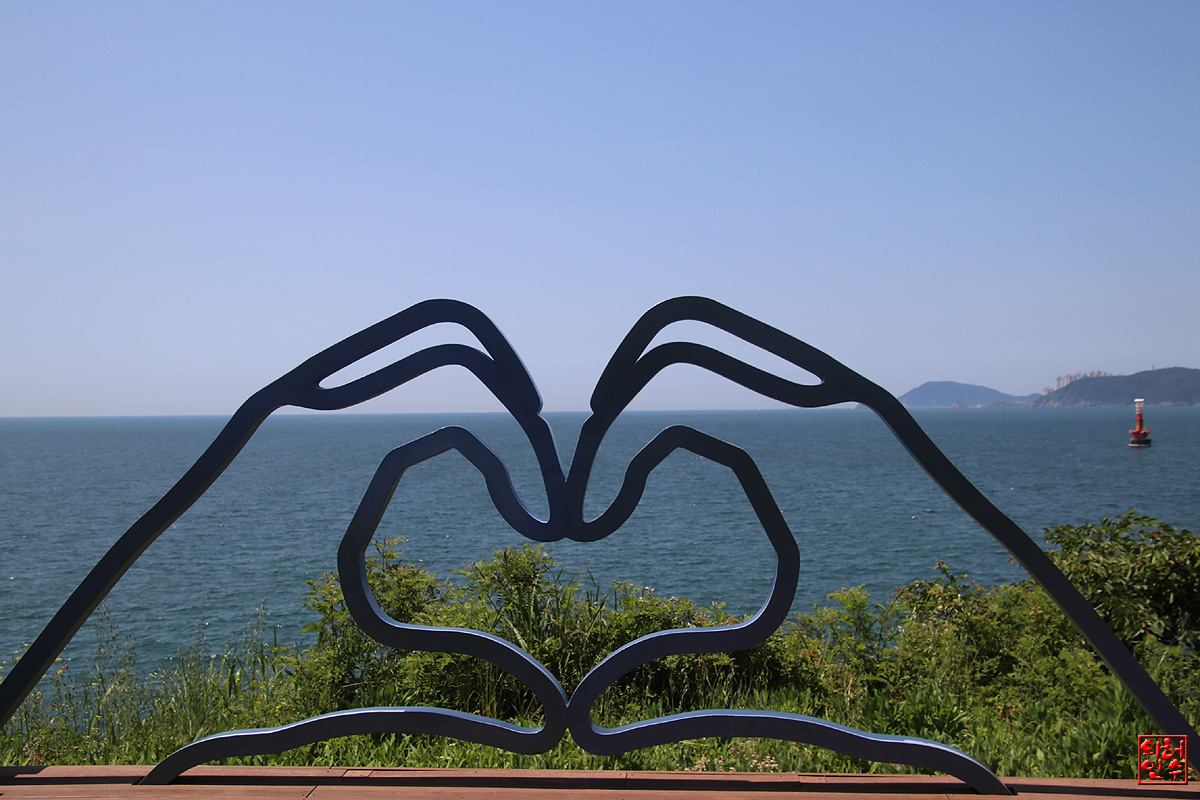 2,손으로 하트 모양을 만든 조형물을 지나다 보니