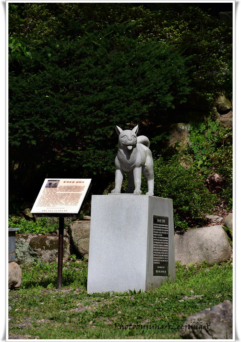 진도개 동아 동상 곁에 세워진 주지스님의 간곡한 축원문을 옮겨보았습니다