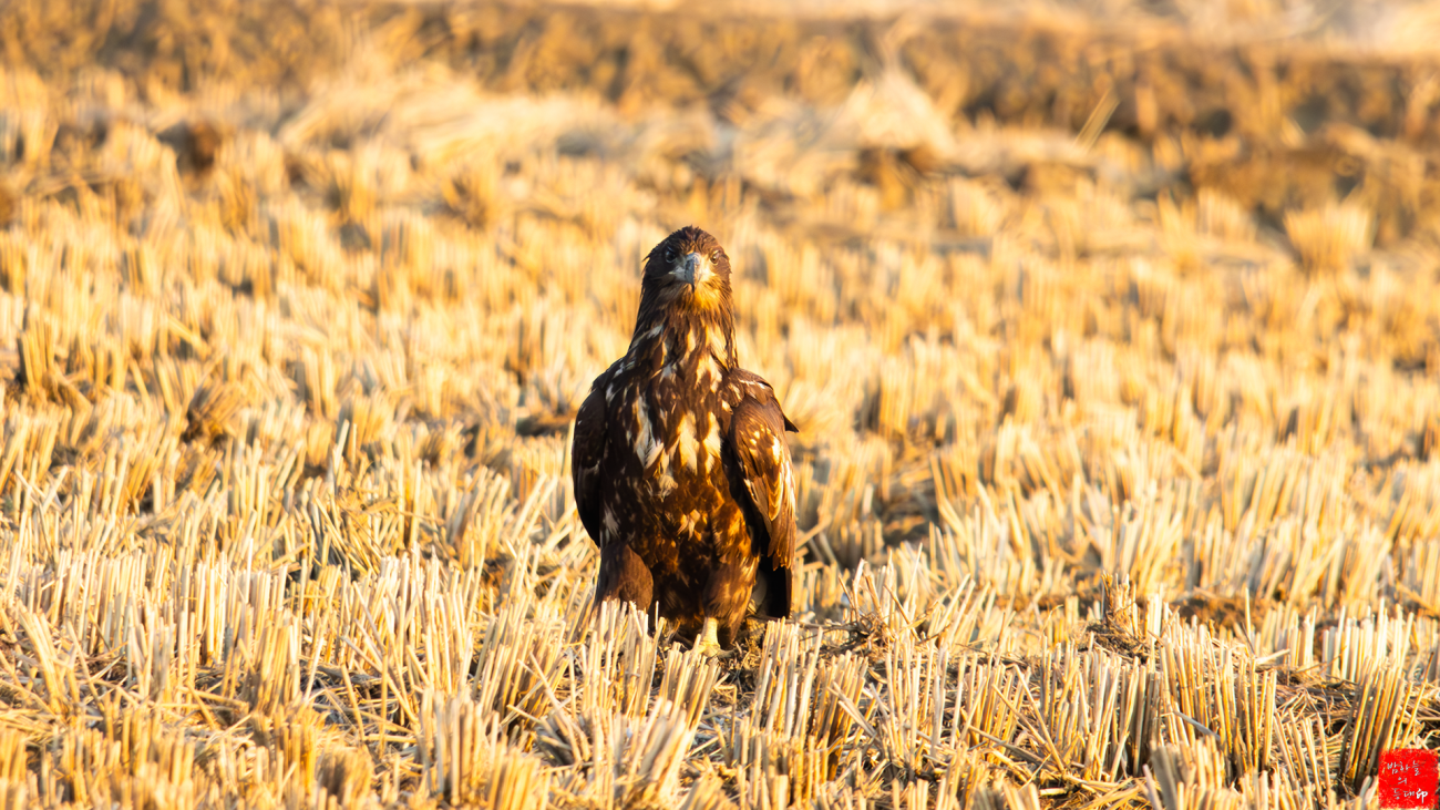 차량과 논 가운데 까지는 상당한 거리가 있는데,생각외로 민감한 흰꼬리수리이다.