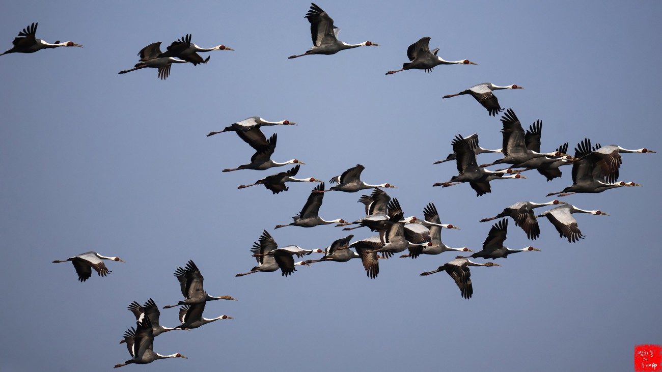 두루미들이 일제히 비상을 한다.