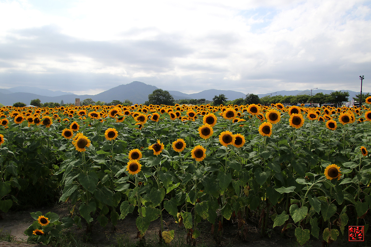해바라기로 꽉 찬 모습이 장관입니다. 배경이 첨성대이니 더욱 그림이 되는군요!