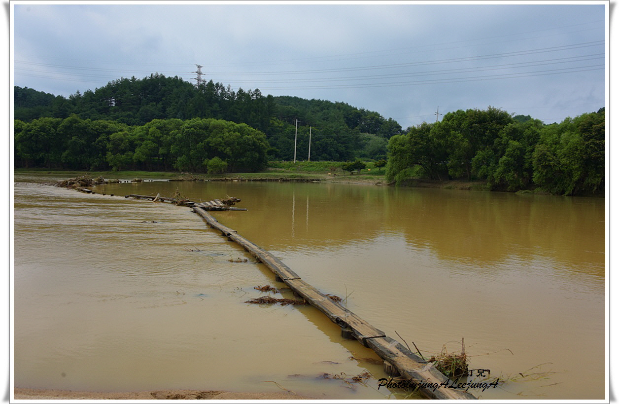 물 수량이 많아 나무다리를 건널 수는 없을 것 같네요..다리를 정리하려면