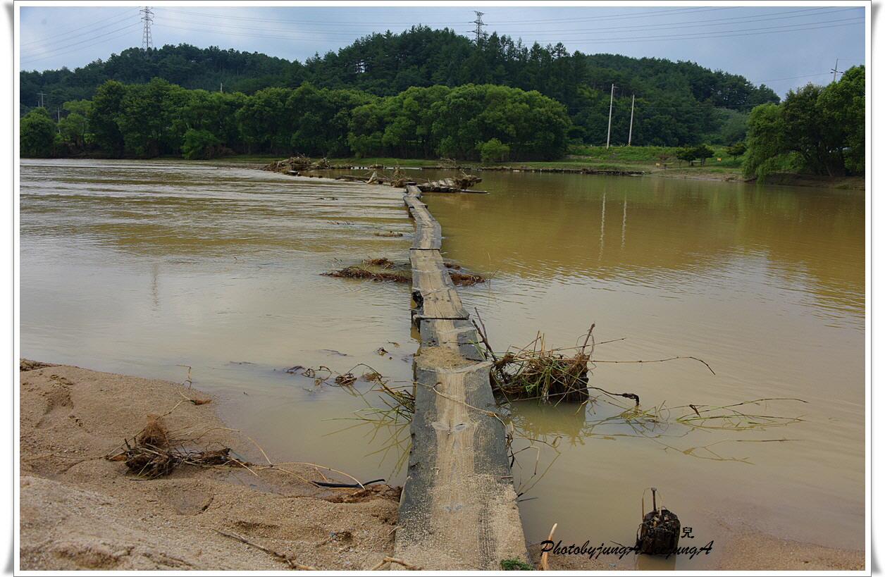 다리가 떠내려 가지는 않았지만 밀려 온 토사에 묻혀