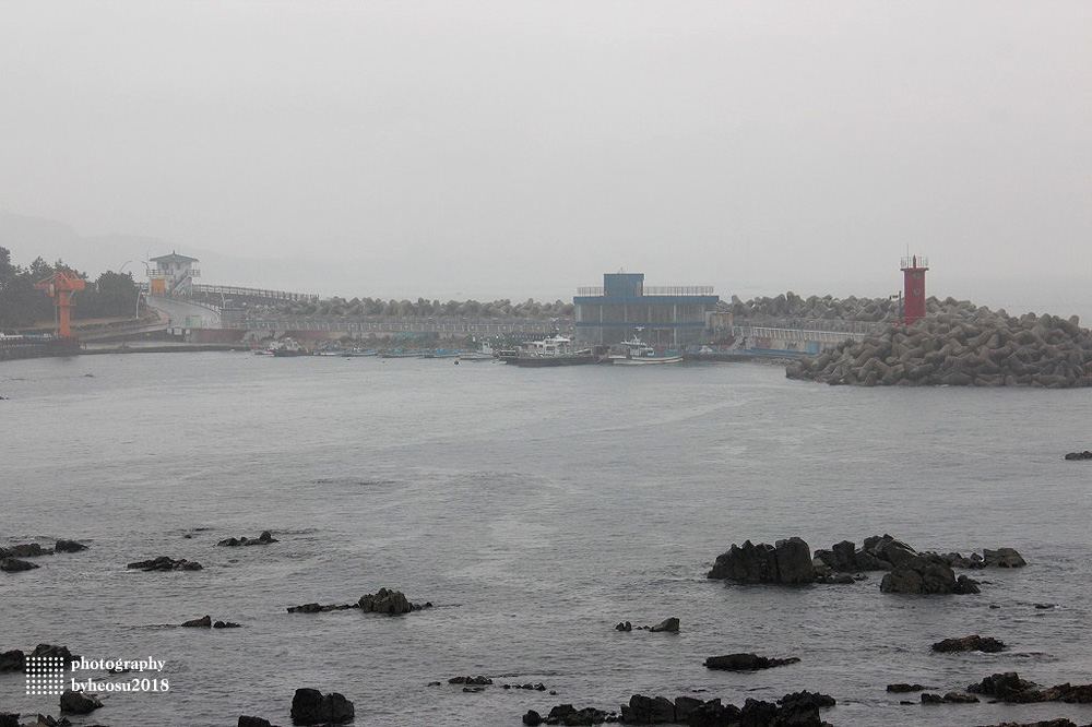 바다가 가까워질수록 빗줄기는 점점 굵어지고 나즈막히 내려앉은 비구름은