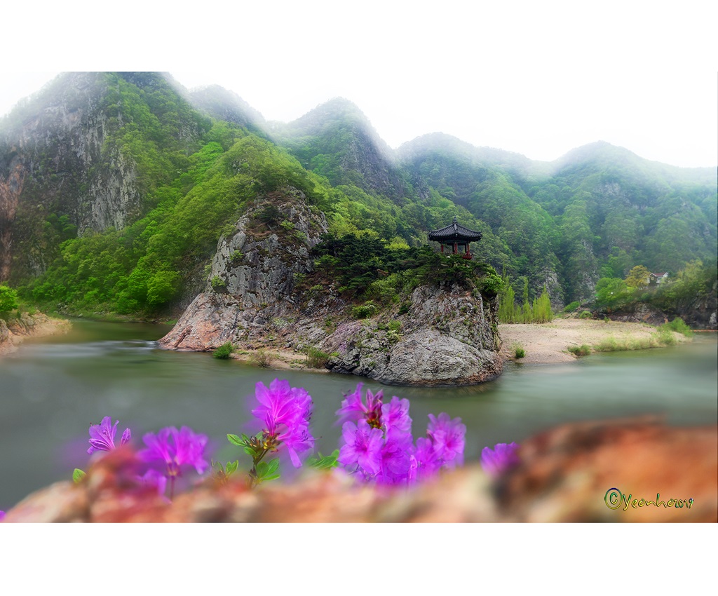 "月留峰"의 秀麗함과,"수달래"의 風光이~어우러지고..